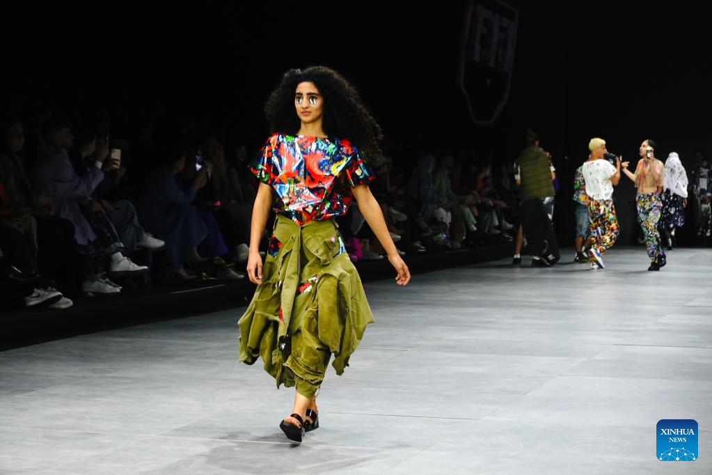 "Sustainability is a major part of my work, and this collection is entirely up-cycled. They are made out of textile waste and pre-used garments," David Wexler, an Israeli fashion and textile designer featured on the opening runway, told Xinhua.