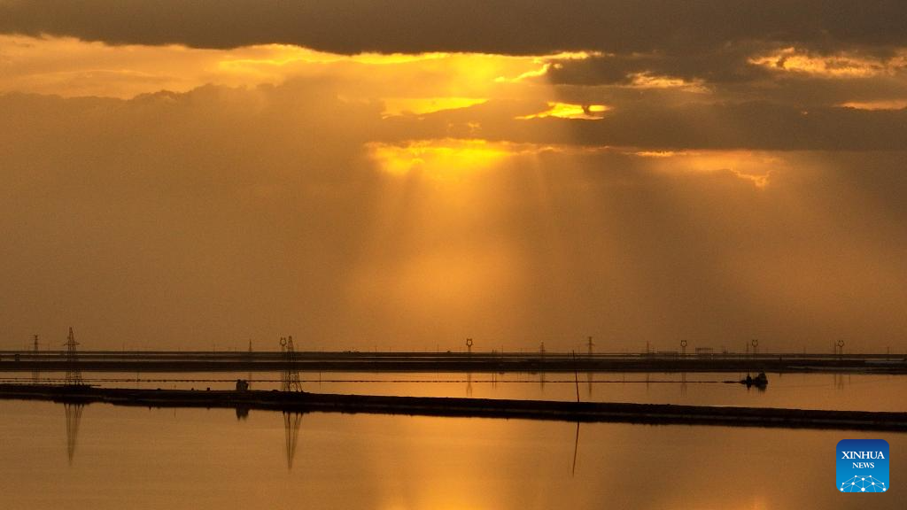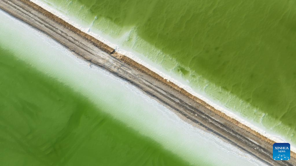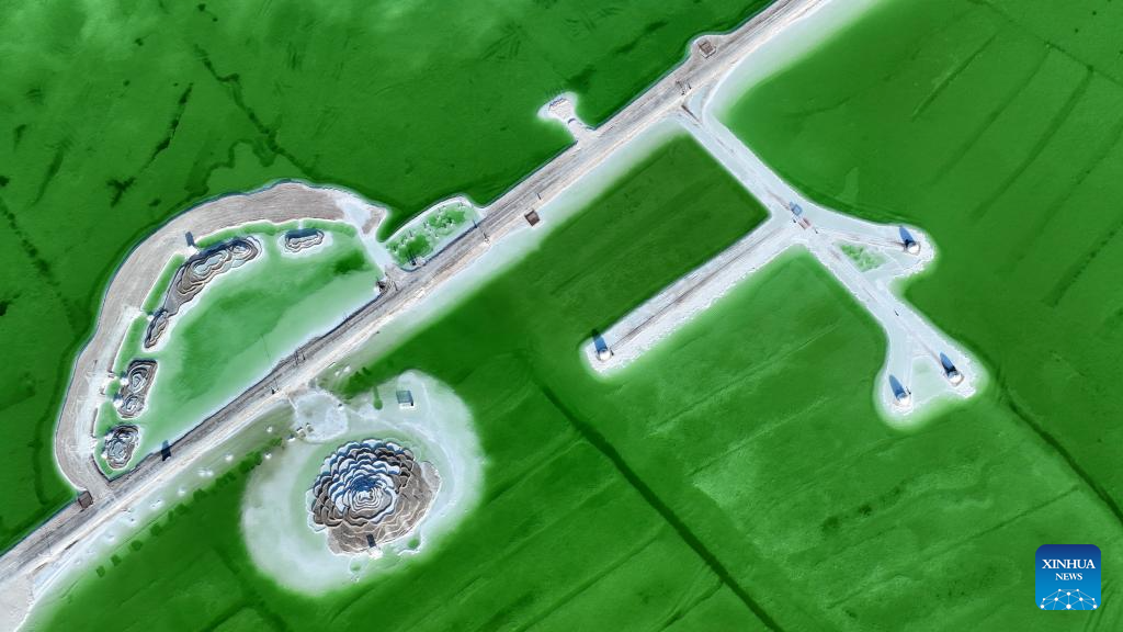 This aerial photo taken on June 9, 2023 shows the scenery of the Qairhan salt lake in Golmud, northwest China's Qinghai Province. The Qairhan salt lake, with a total area of 5,856 square kilometers, has been the largest potash fertilizer producing base in China. (Xinhua/Han Fangfang)