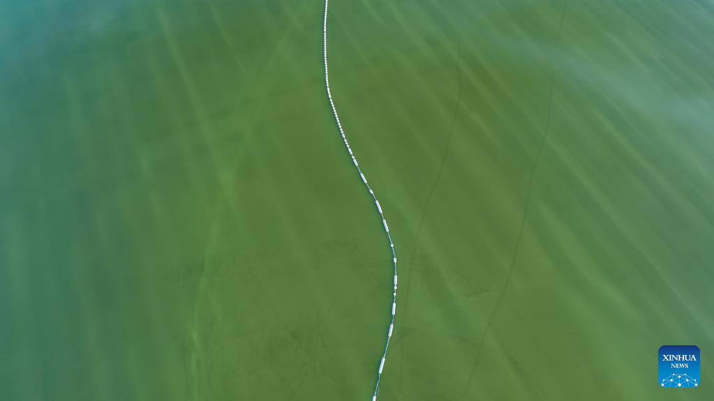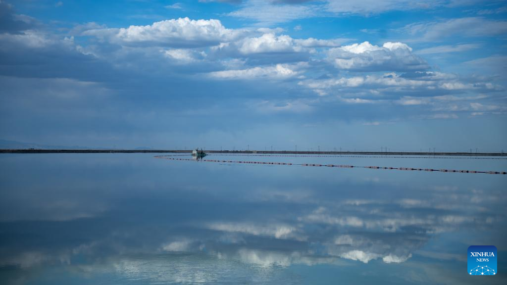 This aerial photo taken on June 9, 2023 shows the scenery of the Qairhan salt lake in Golmud, northwest China's Qinghai Province. The Qairhan salt lake, with a total area of 5,856 square kilometers, has been the largest potash fertilizer producing base in China. (Xinhua/Zhang Hongxiang)