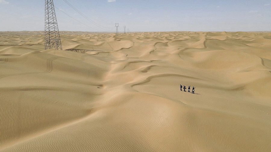 Stretching over 264 km, the transmission line plays a crucial role in ensuring a stable power supply to counties and villages situated along the southern edge of the Taklimakan in northwest China's Xinjiang Uygur Autonomous Region, including Qiemo and Ruoqiang.