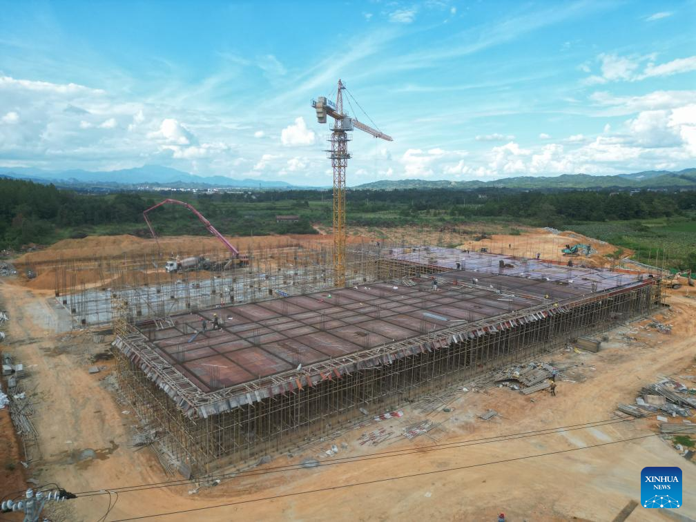 This aerial photo taken on Sept. 12, 2023 shows the construction site of a fan industrial park in Ganzhu Township in Guangchang County, east China's Jiangxi Province. (Xinhua/Zhu Yunuo)