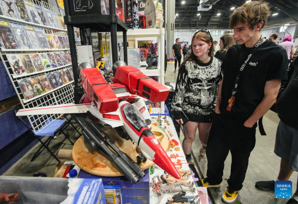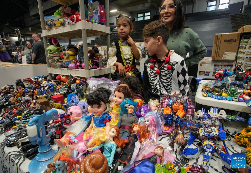 People visit the Vancouver Comic and Toy Show in Vancouver, British Columbia, Canada, on Oct. 21, 2023. The Vancouver Comic and Toy Show, a two-day event over the weekend, features a vast array of collectible toys, superhero memorabilia, comic books, and pop culture items, drawing thousands of collectors and enthusiasts. (Photo by Liang Sen/Xinhua)