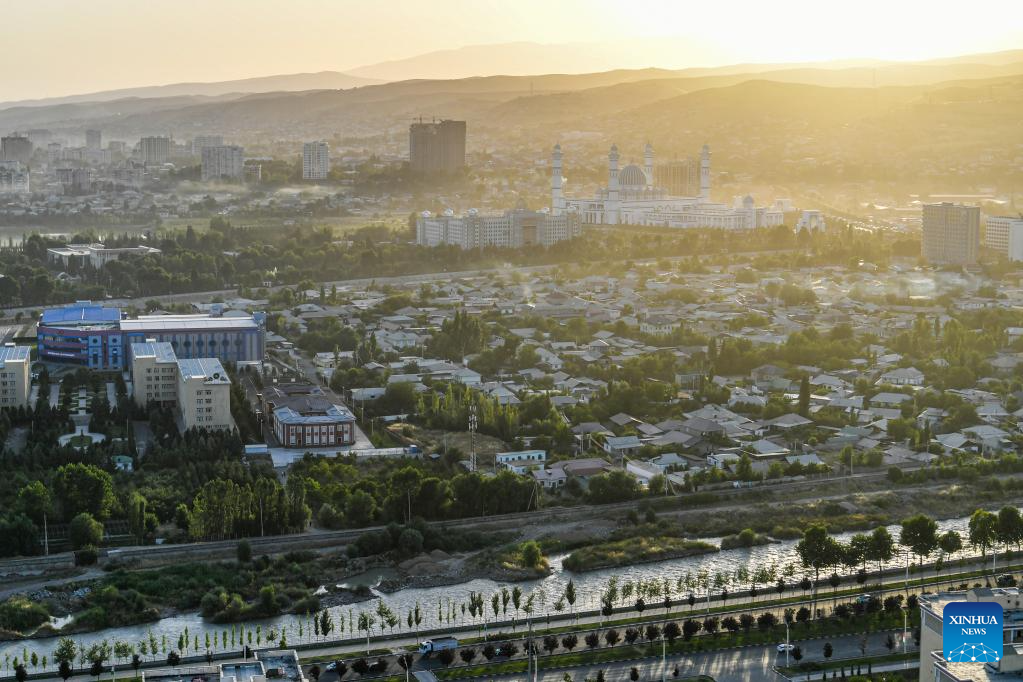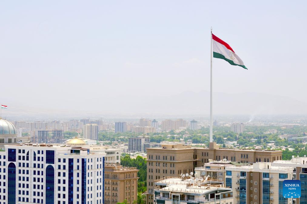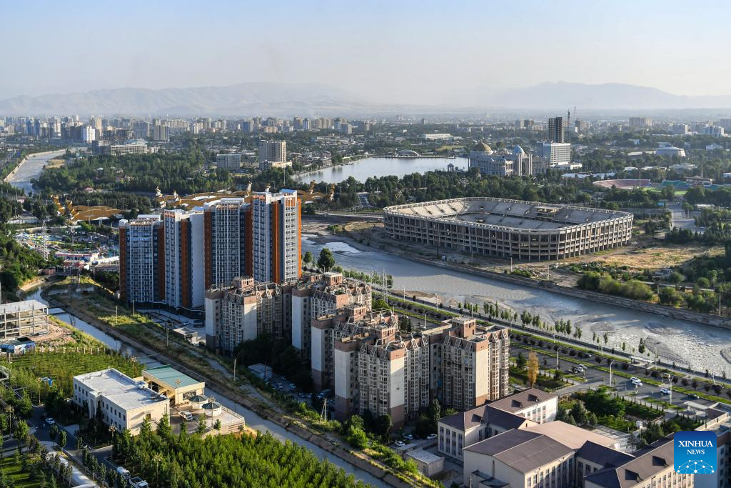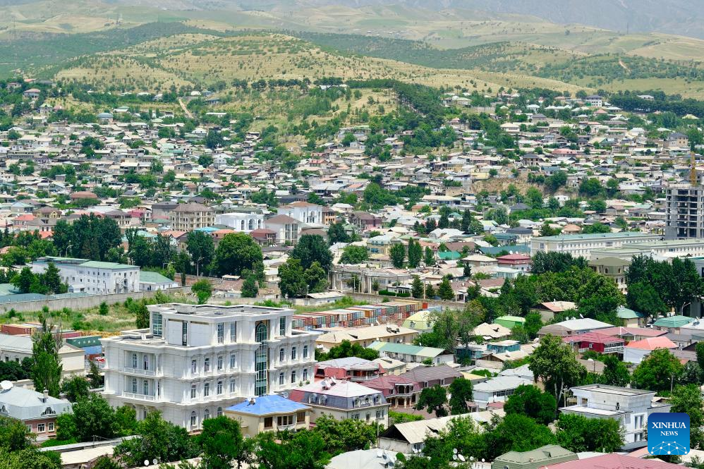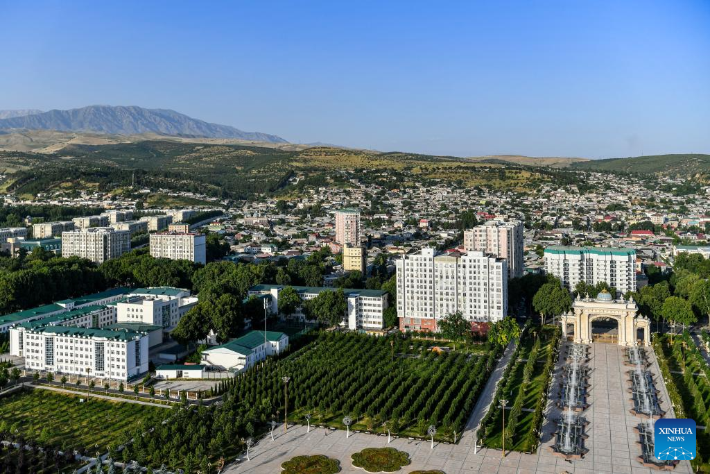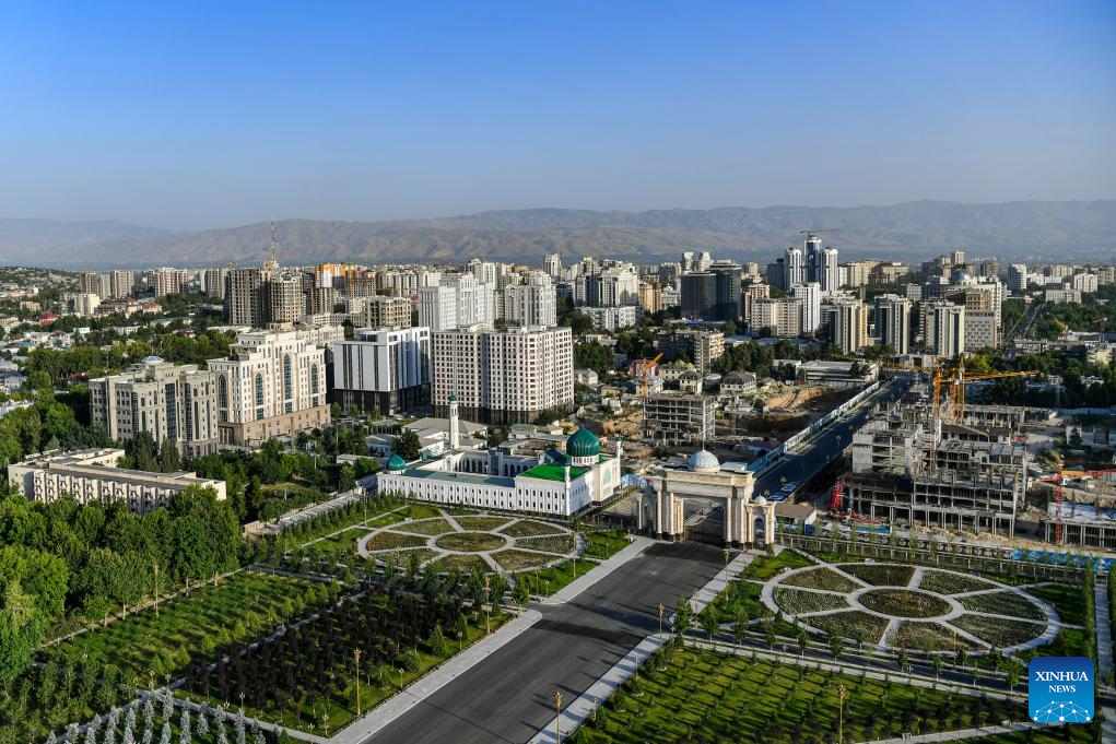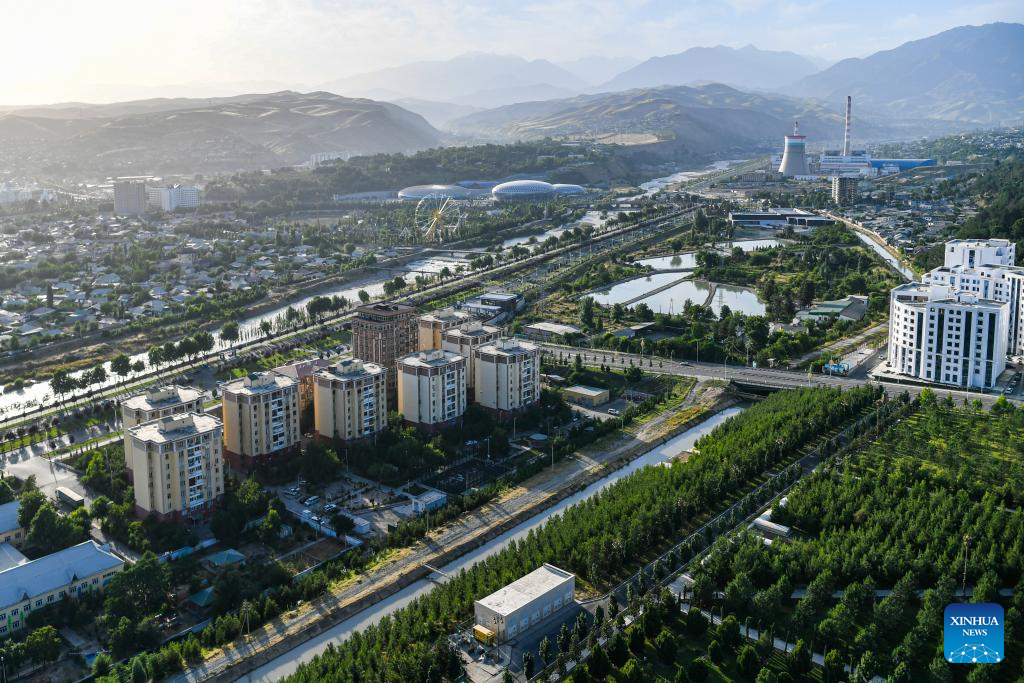 This photo taken on June 26, 2024 shows a view of Dushanbe, Tajikistan. Tajikistan is located in the southeast of Central Asia, with a mountainous area exceeding 90% of its total area. Dushanbe is the capital of Tajikistan and the economic and cultural center. (Xinhua/Cao Yang)
