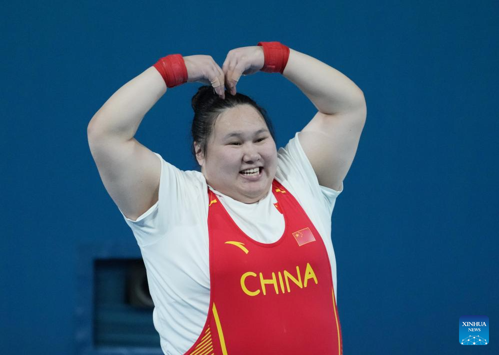 PARIS, Aug. 11 (Xinhua) -- Chinese weightlifter Li Wenwen claimed the women's +81kg title on the last day of the Paris Olympics on Sunday in the South Paris Arena.