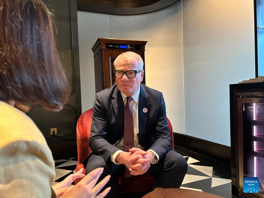 Richard Parker, mayor of the West Midlands, is interviewed in southwest China's Chongqing Municipality, March 19, 2025. (Xinhua/Zhou Bintao)