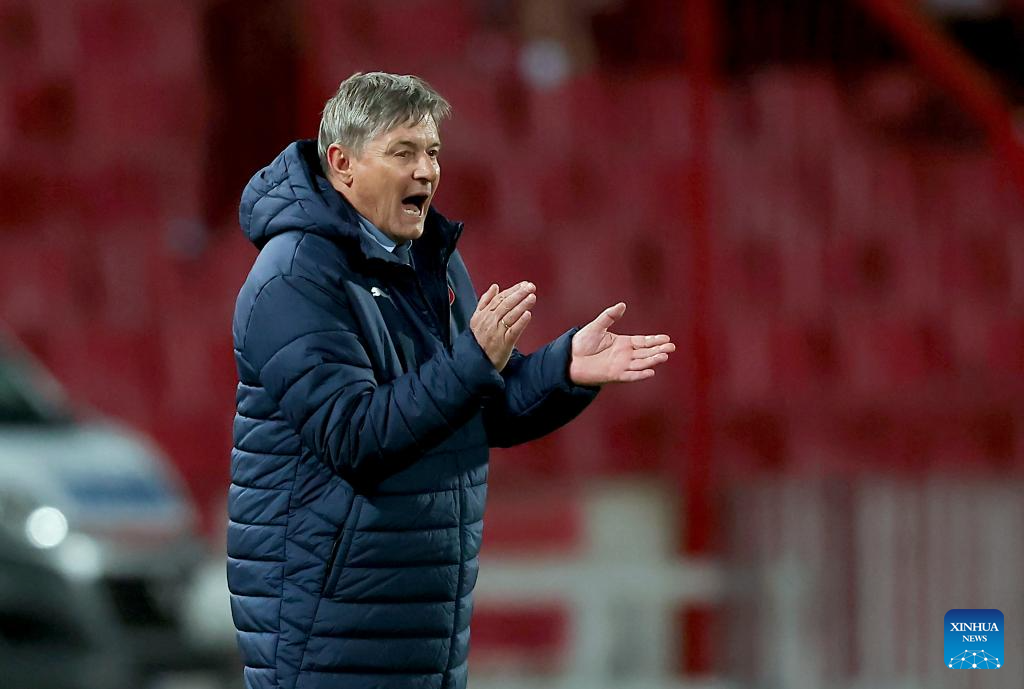 Serbia's head coach Dragan Stojkovic instructs during the UEFA Nations League play-offs 2nd leg football match between Serbia and Austria in Belgrade, Serbia, March 23, 2025. (Photo by Predrag Milosavljevic/Xinhua)