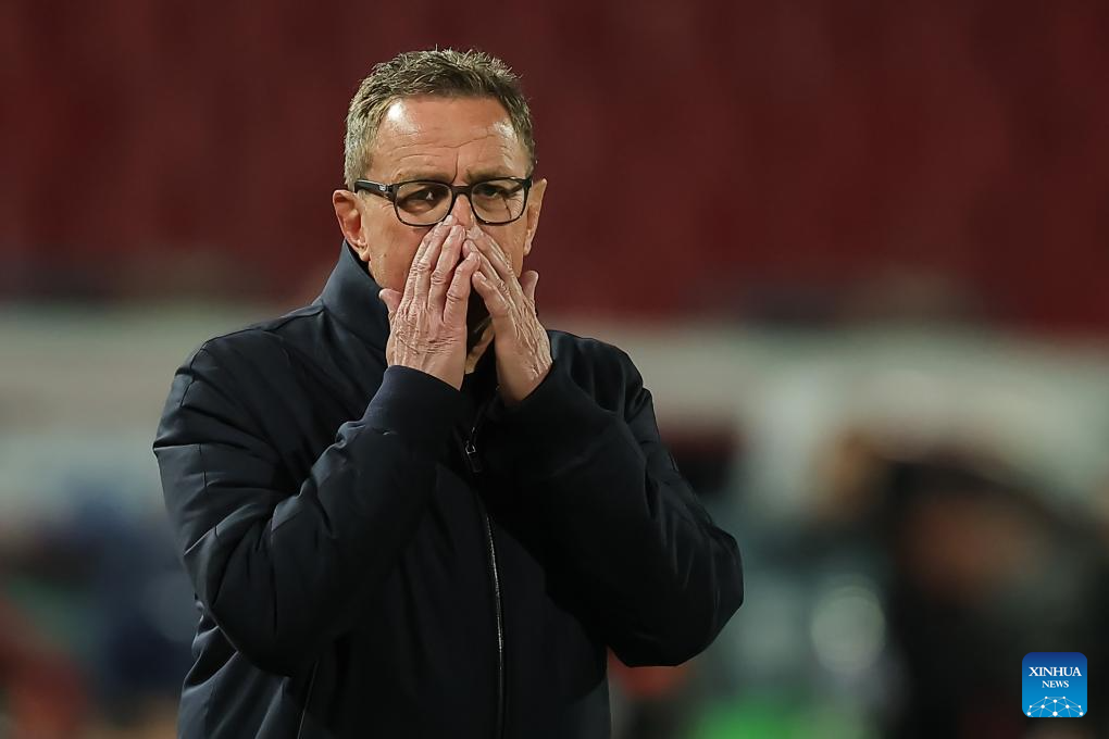 Austria's head coach Ralf Rangnick instructs during the UEFA Nations League play-offs 2nd leg football match between Serbia and Austria in Belgrade, Serbia, March 23, 2025. (Photo by Predrag Milosavljevic/Xinhua)