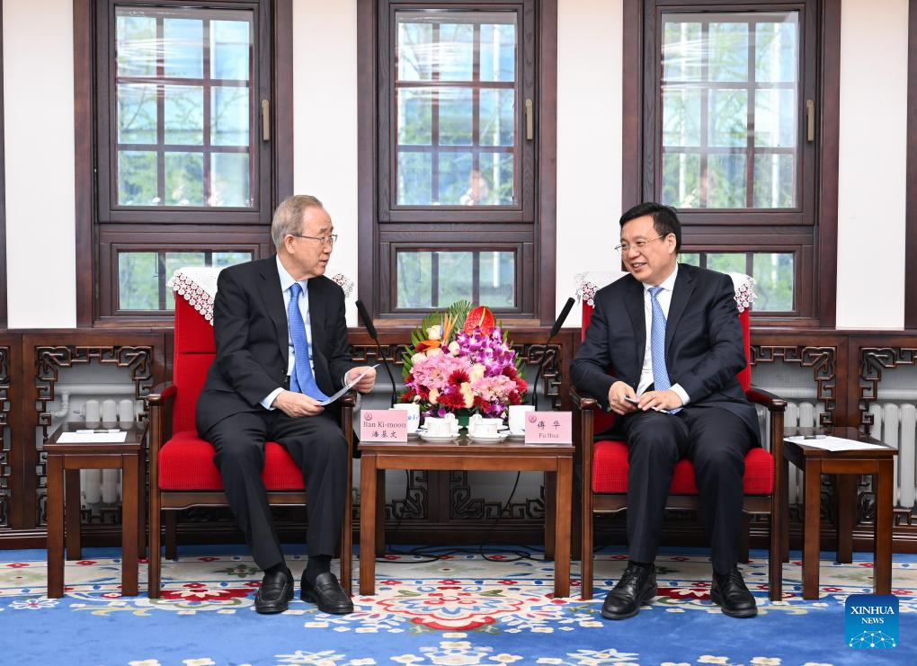BEIJING, March 29 (Xinhua) -- Fu Hua, president of Xinhua News Agency, met with Ban Ki-moon, former UN secretary-general and chairman of Ban Ki-moon Foundation for a Better Future, in Beijing on Saturday.