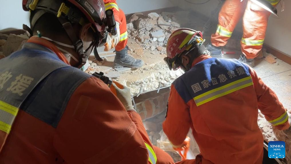 NAY PYI TAW/KUNMING, March 30 (Xinhua) -- A rescue team of China's Yunnan Province, joined by Myanmar's rescue forces, retrieved an elderly man in earthquake-hit Myanmar capital Nay Pyi Taw at 05:00 local time on Sunday.