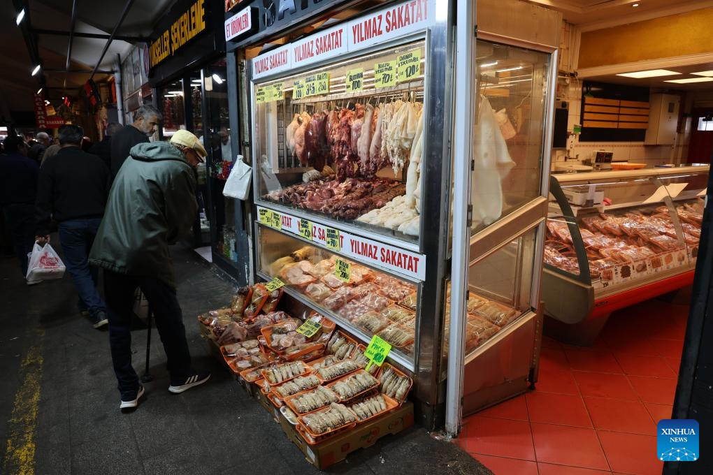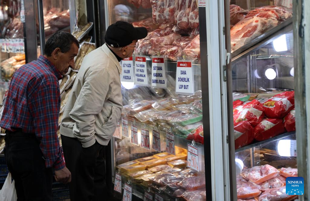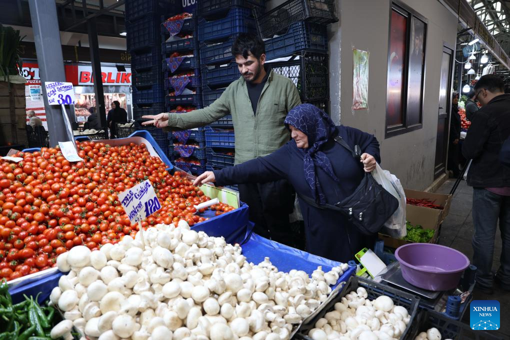 People shop at a local market in Ankara, Türkiye, on April 3, 2025. Türkiye's annual inflation rate decreased for the 10th consecutive month in March, easing to 38.1 percent down from February's 39.1 percent, the lowest level since December 2021, official data showed on Thursday. (Mustafa Kaya/Handout via Xinhua)