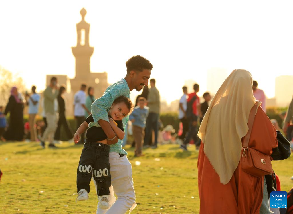 People spend time at Al-Azhar Park in Cairo, Egypt, on April 2, 2025. (Xinhua/Sui Xiankai)
