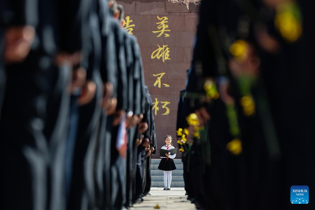 People across the country attend tomb-sweeping activities to pay tribute to martyrs ahead of the Qingming Festival, which falls on April 4 this year. (Photo by Du Penghui/Xinhua)