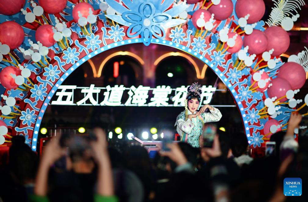 The third edition of a crabapple blossom festival kicked off on Thursday at Wudadao historical urban area, a popular tourist destination in the downtown area of Tianjin. The festival, which stays on until April 13, features more than 100 art and culture performances to enable "immersive" experience for the visitors. (Xinhua/Zhao Zishuo)