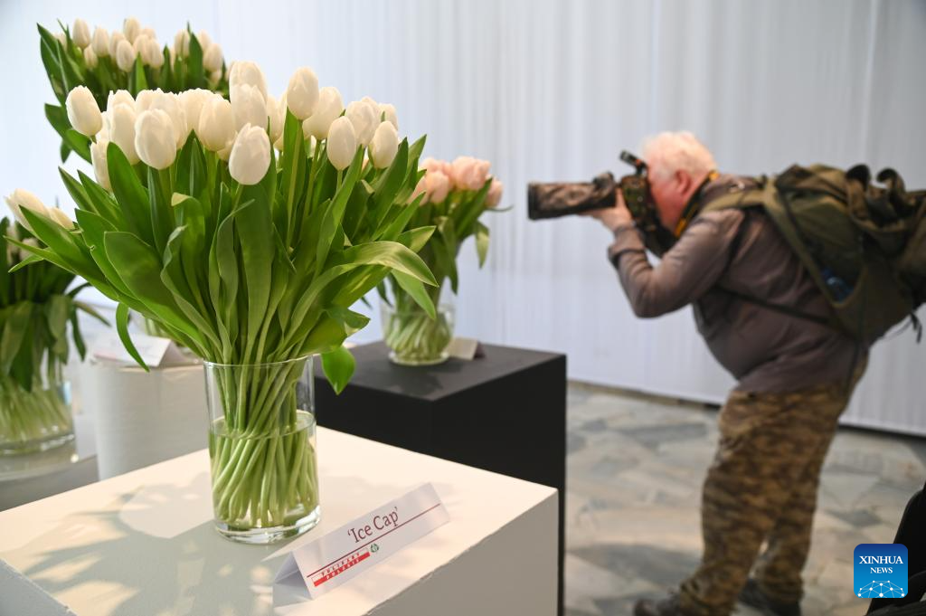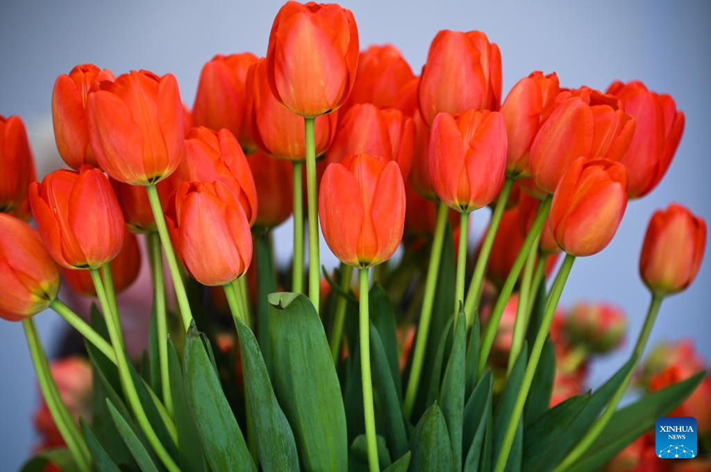 This photo taken on April 5, 2025 shows tulips on display during the 15th Tulip Exhibition at Wilanow Palace in Warsaw, Poland. The event runs through April 6. (Photo by Aleksy Witwicki/Xinhua)