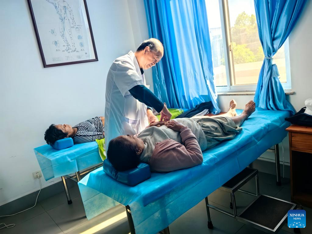 This photo taken on June 7, 2024 shows Li Yongsheng administering acupuncture treatment to local patients in Madagascar. (Xinhua)