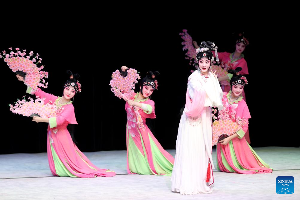 Artists perform the traditional Chinese Wu Opera "The Legend of the White Snake" in Vienna, Austria, April 5, 2025. The Chinese Opera Season 2025 opened here on Saturday night with a performance of the traditional Wu Opera "The Legend of the White Snake", marking the beginning of a series of Chinese operatic performances in the Austrian capital. (Xinhua/Zhao Dingzhe)