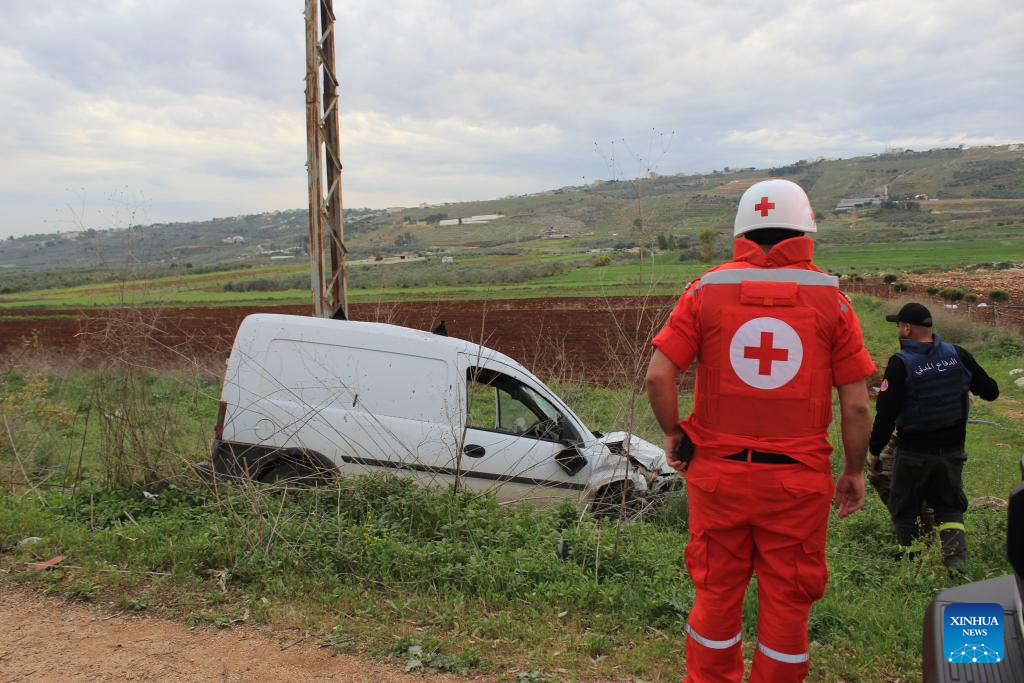 In one strike targeting the Dardara road, "two Syrian nationals riding a motorcycle were killed, and a Lebanese citizen was injured," Lebanon's official National News Agency reported. (Photo by Taher Abu Hamdan/Xinhua)
