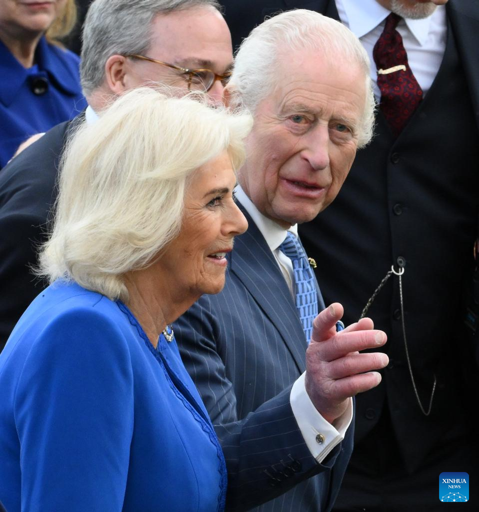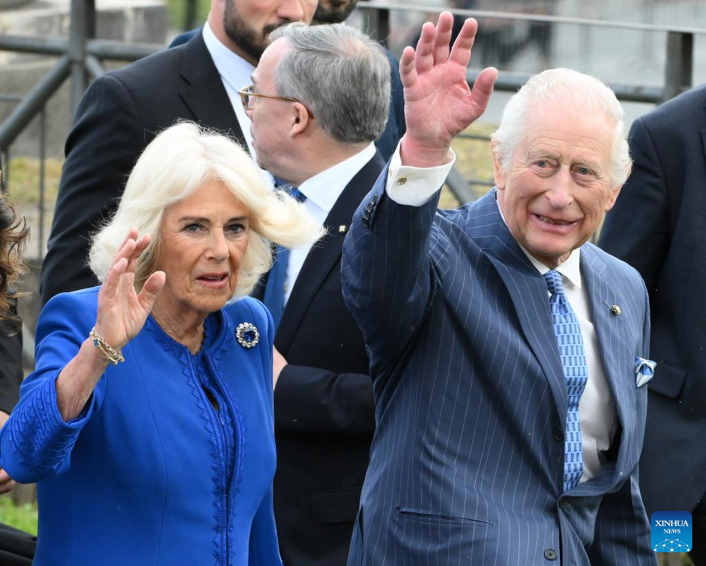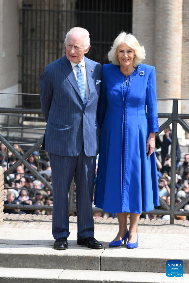 ROME, April 8 (Xinhua) -- Britain's King Charles III and Queen Camilla met with Italian President Sergio Mattarella here on Tuesday, the day after their arrival for a four-day state visit to Italy.