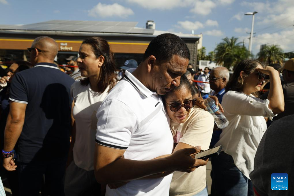Photo taken on April 8, 2025 shows the site of a nightclub roof collapse in Santo Domingo, the Dominican Republic. (Str/Xinhua)