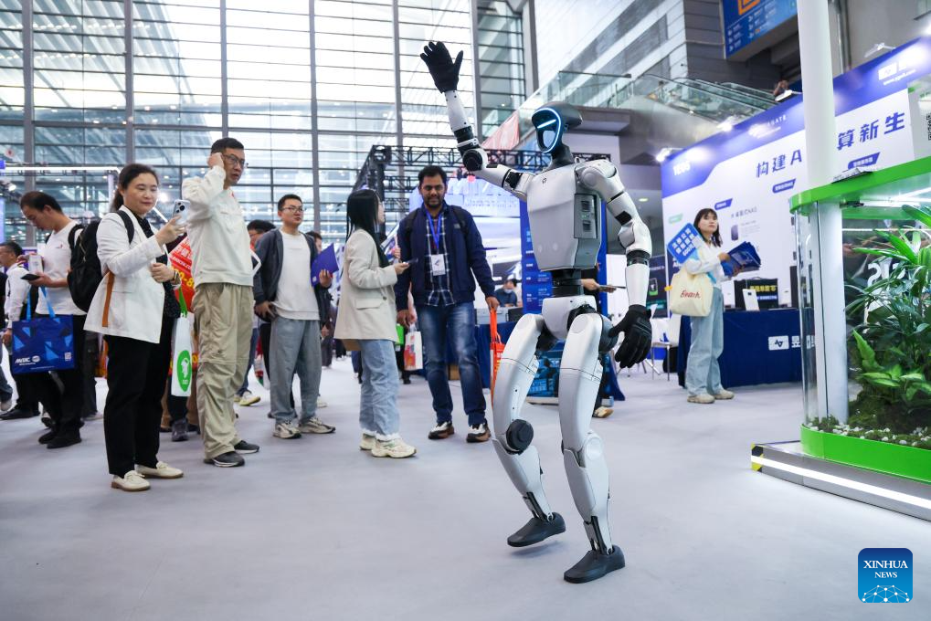 Visitors watch the demonstration of a humanoid robot at the 13th China Information Technology Expo (CITE 2025) in Shenzhen, south China's Guangdong Province, April 9, 2025. The expo kicked off at Shenzhen Convention & Exhibition Center (Futian) on Wednesday. Themed on "Technology Leading, Innovation Gathering in Shenzhen", the exhibition focuses on cutting-edge key areas such as intelligent terminals, optoelectronic displays, artificial intelligence, big data storage, basic components, and low-altitude economy, attracting more than a thousand companies to participate. (Xinhua/Liang Xu)