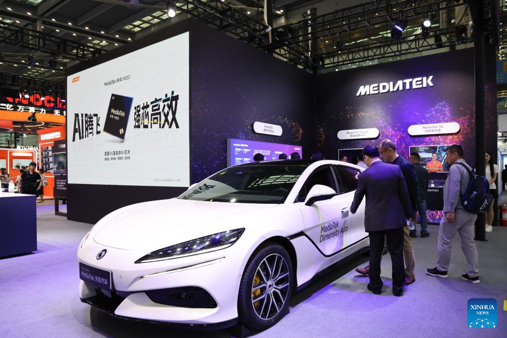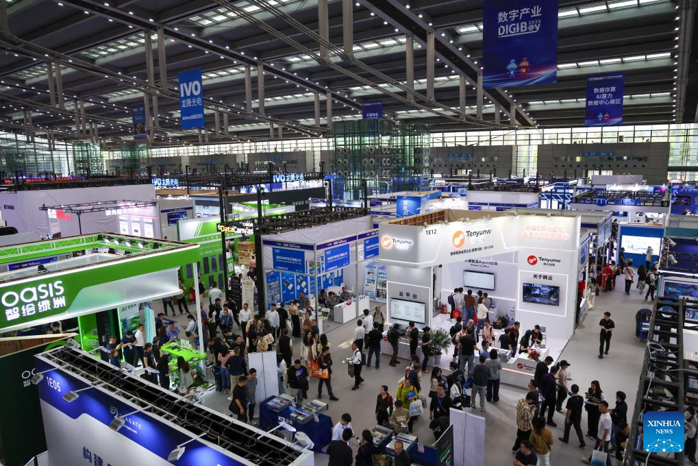 Visitors attend the 13th China Information Technology Expo (CITE 2025) in Shenzhen, south China's Guangdong Province, April 9, 2025. The expo kicked off at Shenzhen Convention & Exhibition Center (Futian) on Wednesday. Themed on "Technology Leading, Innovation Gathering in Shenzhen", the exhibition focuses on cutting-edge key areas such as intelligent terminals, optoelectronic displays, artificial intelligence, big data storage, basic components, and low-altitude economy, attracting more than a thousand companies to participate. (Xinhua/Liang Xu)