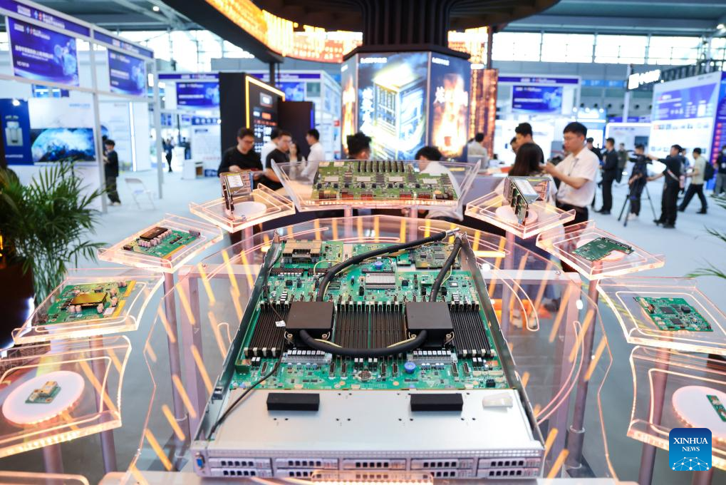 A visitor learns about a graphics card at the 13th China Electronic Information Expo (CITE 2025) in Shenzhen, south China's Guangdong Province, April 9, 2025. The expo kicked off at Shenzhen Convention & Exhibition Center (Futian) on Wednesday. Themed on "Technology Leading, Innovation Gathering in Shenzhen", the exhibition focuses on cutting-edge key areas such as intelligent terminals, optoelectronic displays, artificial intelligence, big data storage, basic components, and low-altitude economy, attracting more than a thousand companies to participate. (Xinhua/Liang Xu)