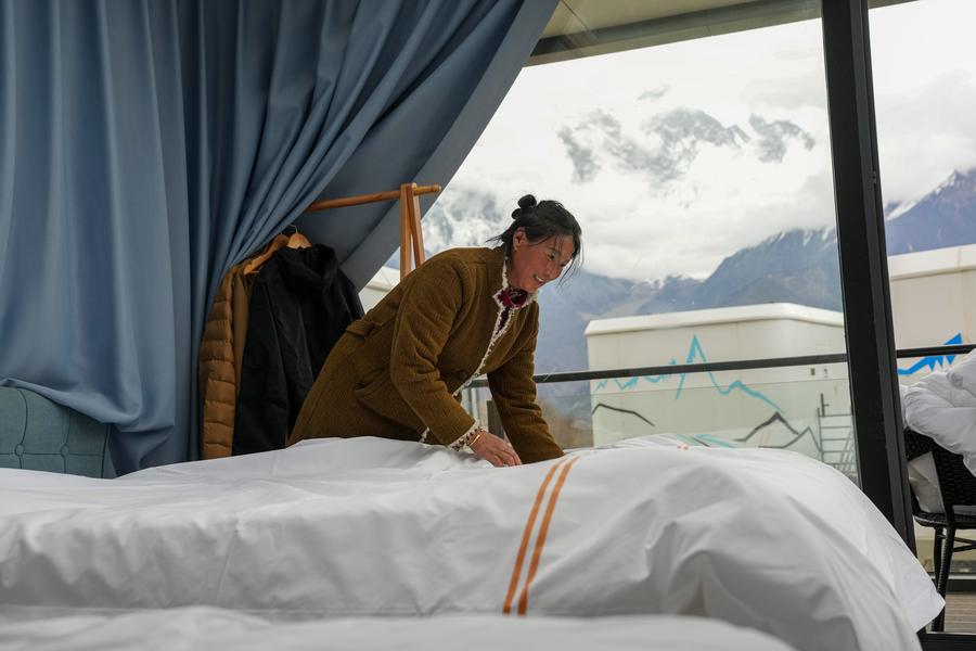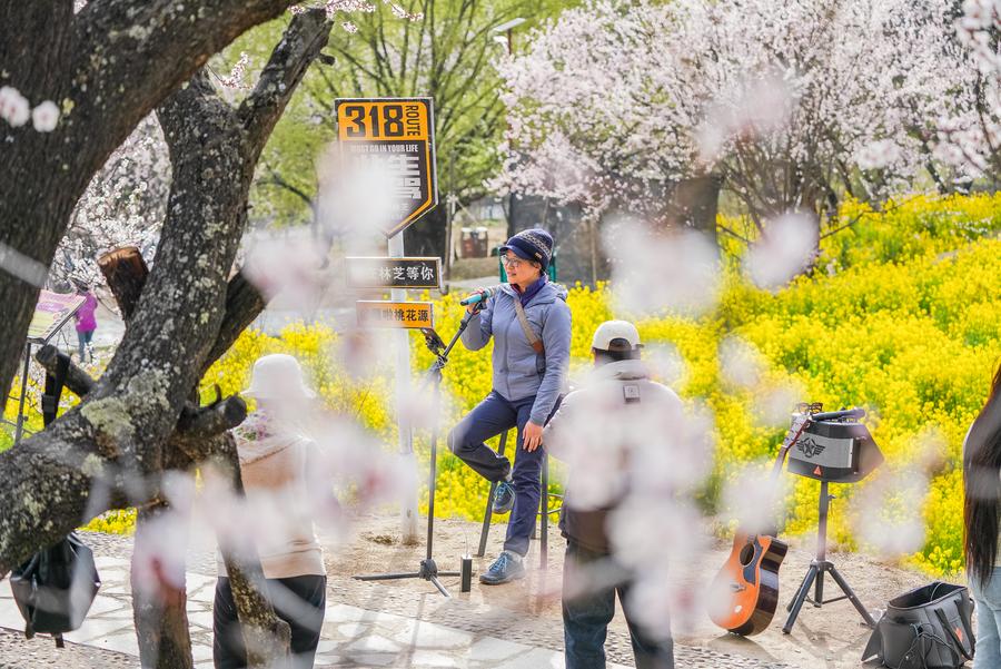 Tourists enjoy the view of peach blossoms in Nyingchi, southwest China's Xizang Autonomous Region, April 2, 2025. (Xinhua/Jigme Dorje)Villagers prepare to hold folk activities for tourists in Nyingchi, southwest China's Xizang Autonomous Region, April 3, 2025. (Xinhua/Tenzin Nyida)Tourists enjoy the view of peach blossoms on horseback in Nyingchi, southwest China's Xizang Autonomous Region, April 2, 2025. (Xinhua/Tenzin Nyida)Tourists select souvenirs in Nyingchi, southwest China's Xizang Autonomous Region, April 3, 2025. (Xinhua/Tenzin Nyida)Tourists select snacks made of peach blossoms in Nyingchi, southwest China's Xizang Autonomous Region, April 3, 2025. (Xinhua/Tenzin Nyida)A staff member tidies up the room at a family inn in Nyingchi, southwest China's Xizang Autonomous Region, April 4, 2025.(Xinhua/Jigme Dorje)■