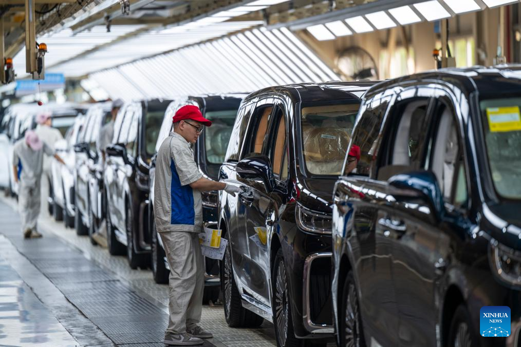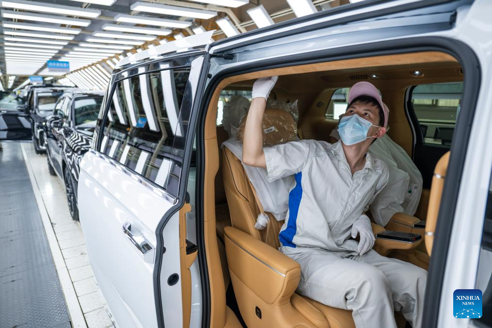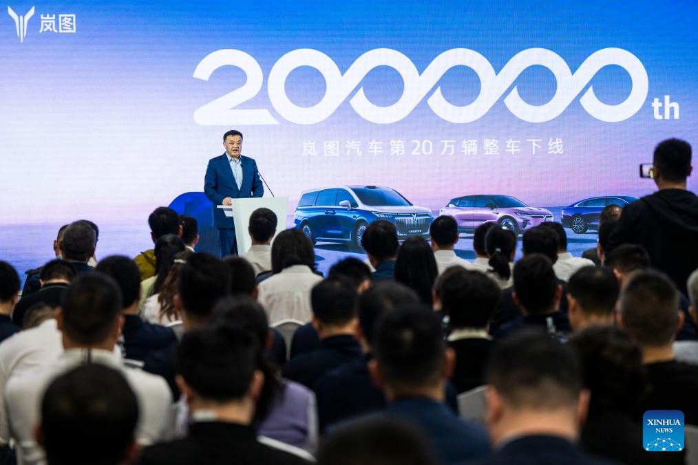 The 200,000th vehicle of Voyah, a Chinese NEV brand, rolls off the assembly line in Wuhan, central China's Hubei Province, April 9, 2025. (Xinhua/Wu Zhizun)