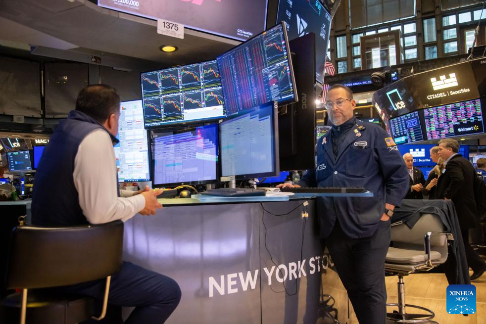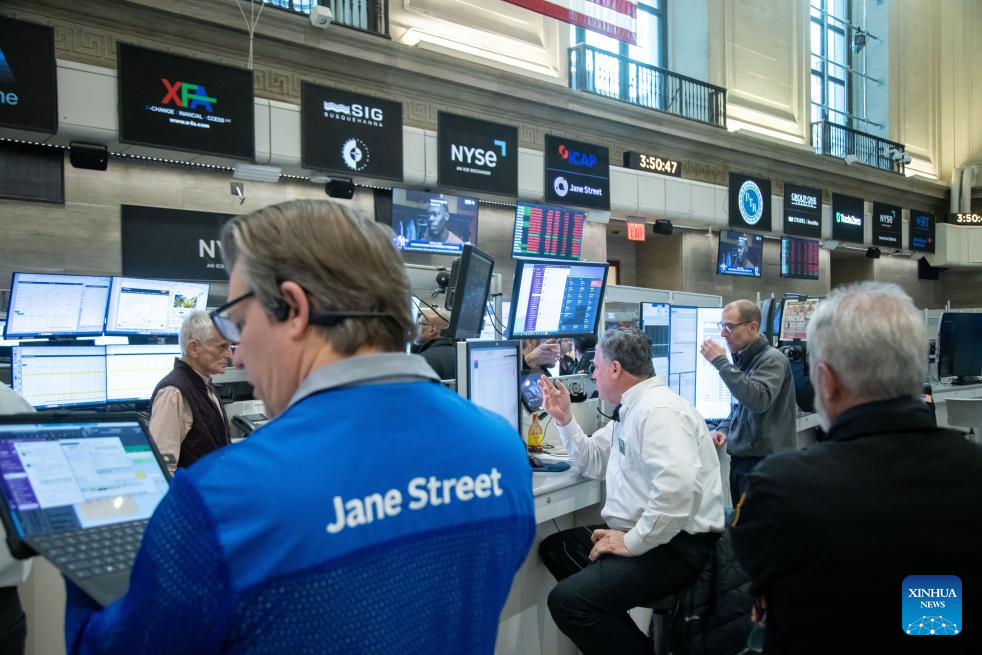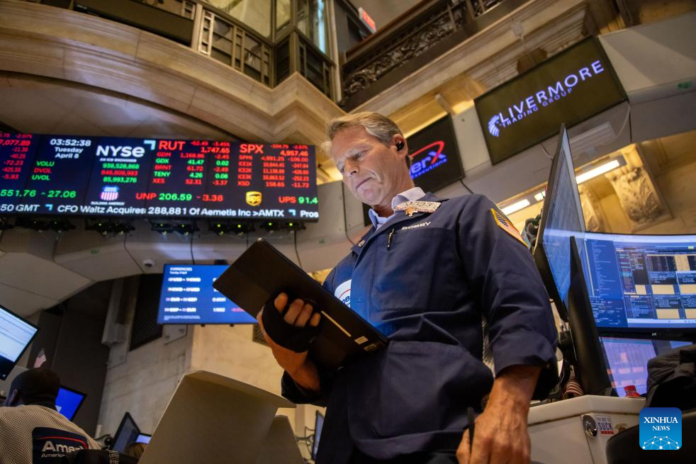 Traders work on the floor of the New York Stock Exchange in New York, the United States, on April 8, 2025. U.S. stocks closed sharply lower on Tuesday. (Photo by Michael Nagle/Xinhua)