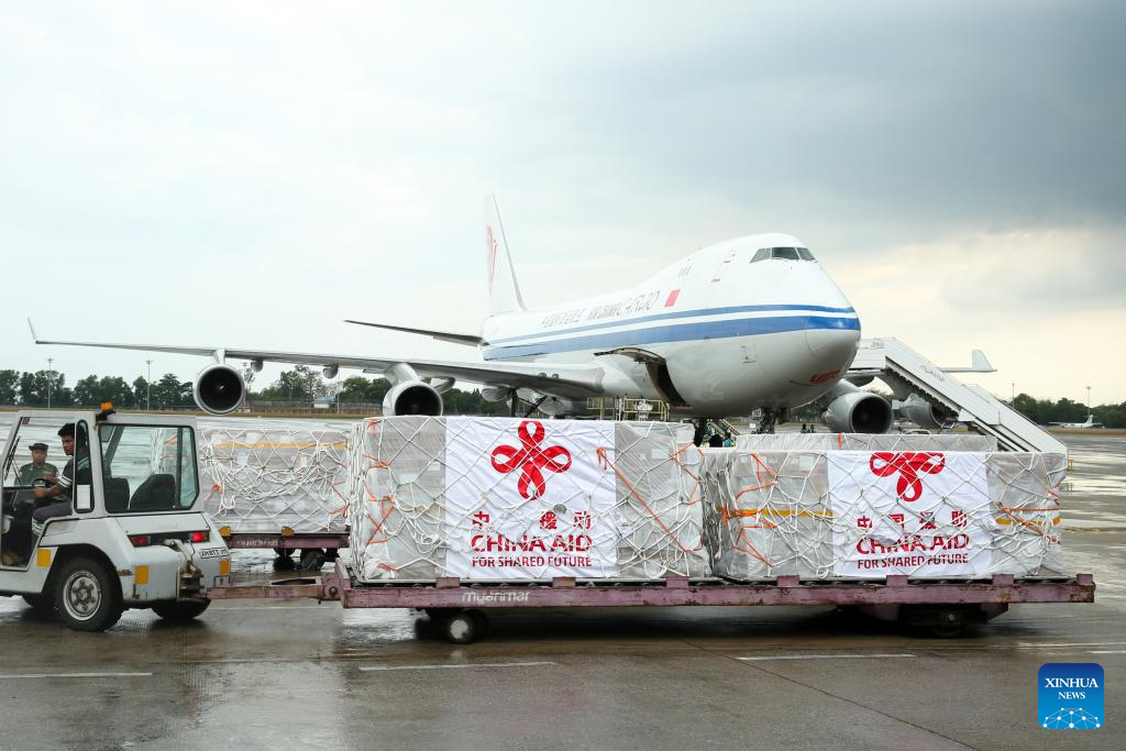 YANGON, April 11 (Xinhua) -- The sixth batch of emergency humanitarian aid dispatched by the Chinese government arrived at Yangon International Airport in Myanmar on Friday.