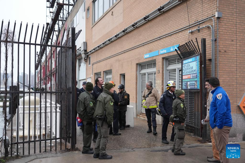 Included were one pilot, two adults and three children, according to Jessica Tisch, commissioner of the New York City Police Department (NYPD). She said four people were announced deceased on scene and another two didn't survive at hospital. (Photo by Zack Zhang/Xinhua)