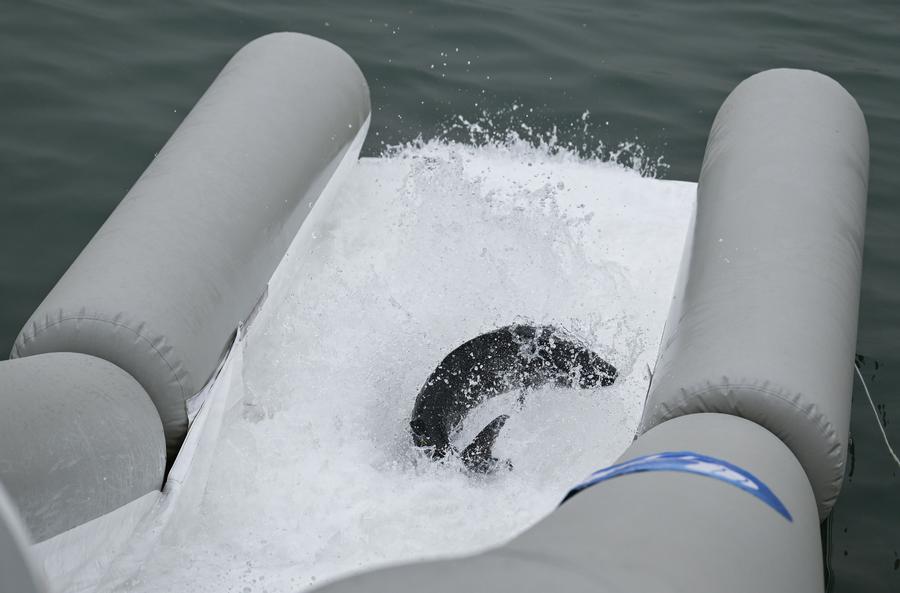 This photo taken on April 12, 2025 shows the Chinese sturgeons that are about to be released into the Yangtze River in Yichang City, central China's Hubei Province. (Xinhua/Du Zixuan)Staff members put a Chinese sturgeon into a release device in Yichang City, central China's Hubei Province, April 12, 2025. (Xinhua/Du Zixuan)A Chinese sturgeon slides into the Yangtze River through a release channel in Yichang City, central China's Hubei Province, April 12, 2025. (Xinhua/Du Zixuan)This photo taken on April 12, 2025 shows an activity to release Chinese sturgeons into the Yangtze River in Yichang City, central China's Hubei Province. (Xinhua/Du Zixuan)Staff members prepare to release a Chinese sturgeon in Yichang City, central China's Hubei Province, April 12, 2025. (Xinhua/Du Zixuan)A staff member puts a Chinese sturgeon into a release channel in Yichang City, central China's Hubei Province, April 12, 2025. (Xinhua/Du Zixuan)■