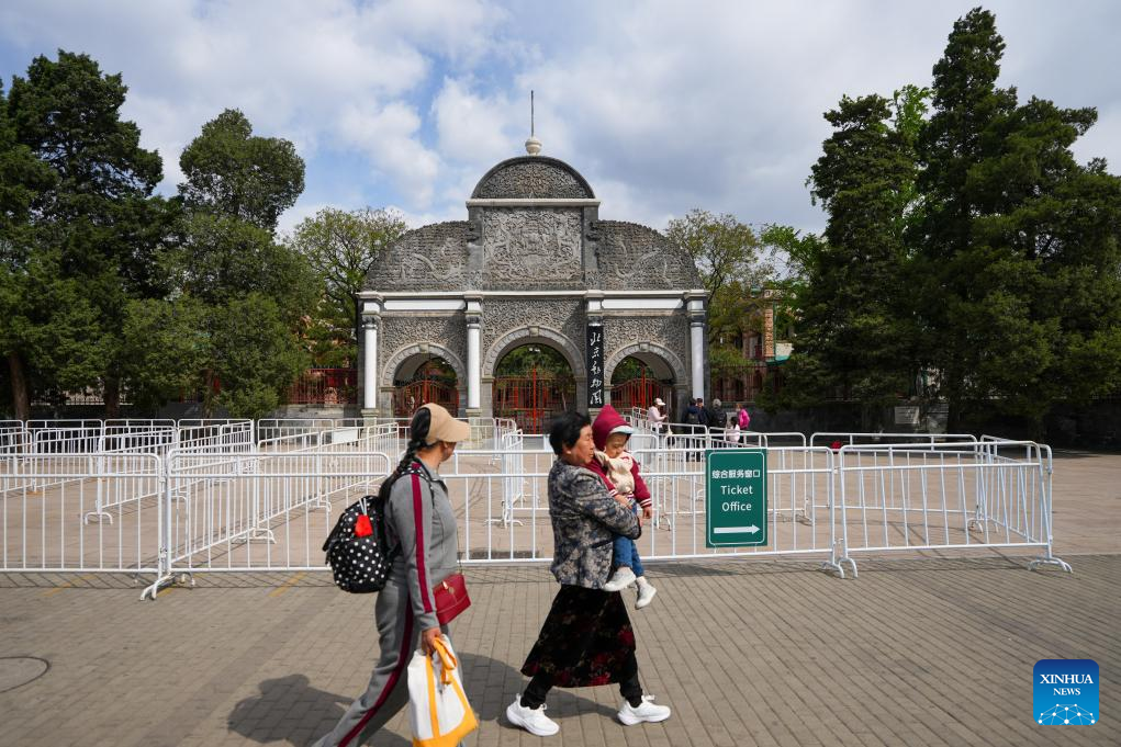 People walk past Beijing zoo that is temporarily closed due to strong winds in Beijing, capital of China, April 12, 2025. Many parts in northern China are experiencing gale-force winds and temperature drops on Saturday. (Xinhua/Ju Huanzong)