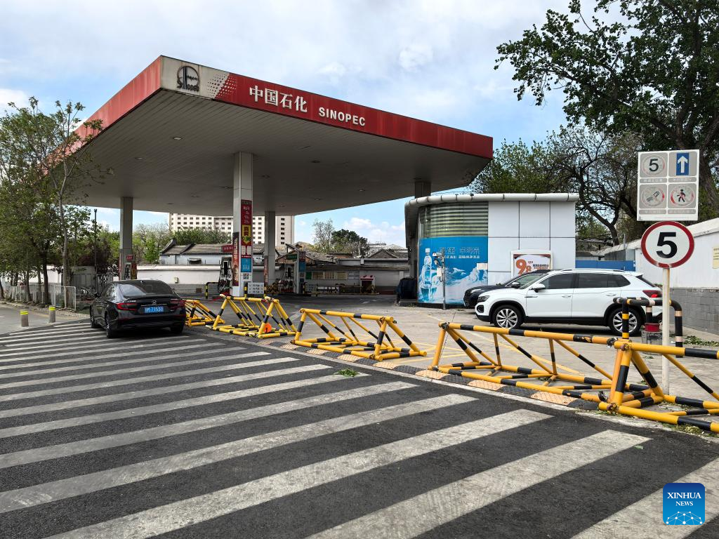 A gas station is temporarily closed due to strong winds in Beijing, capital of China, April 12, 2025. Many parts in northern China are experiencing gale-force winds and temperature drops on Saturday. (Xinhua/Li He)