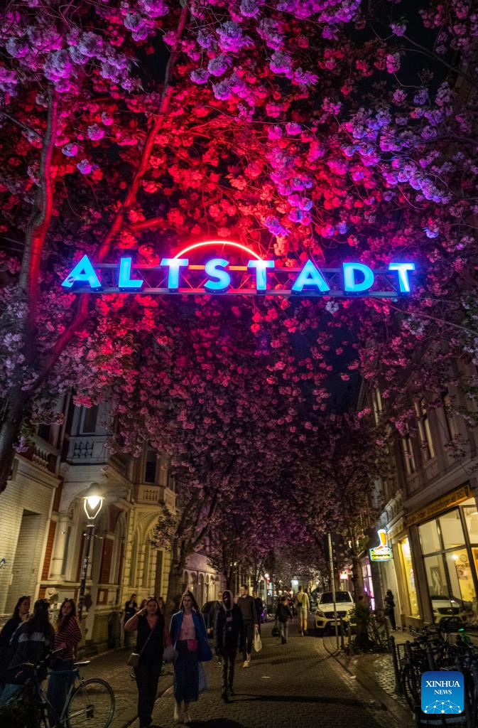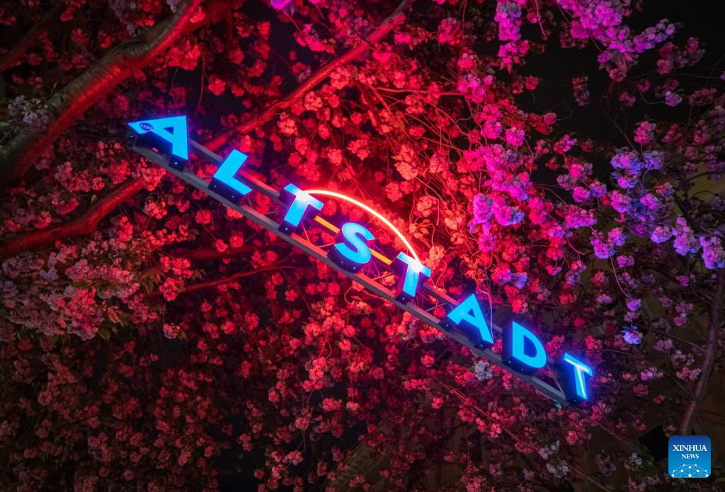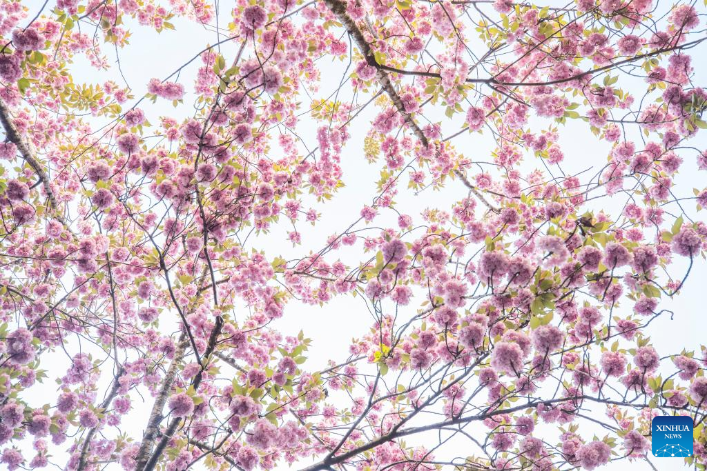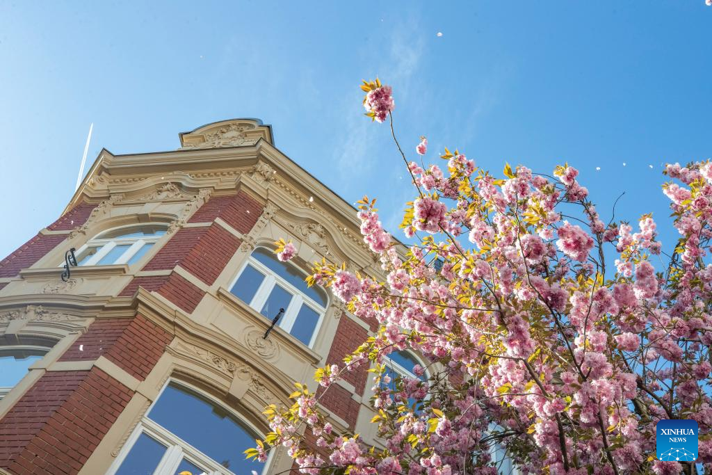 Blooming cherry blossoms are seen in Bonn, Germany, April 12, 2025. (Xinhua/Zhang Fan)