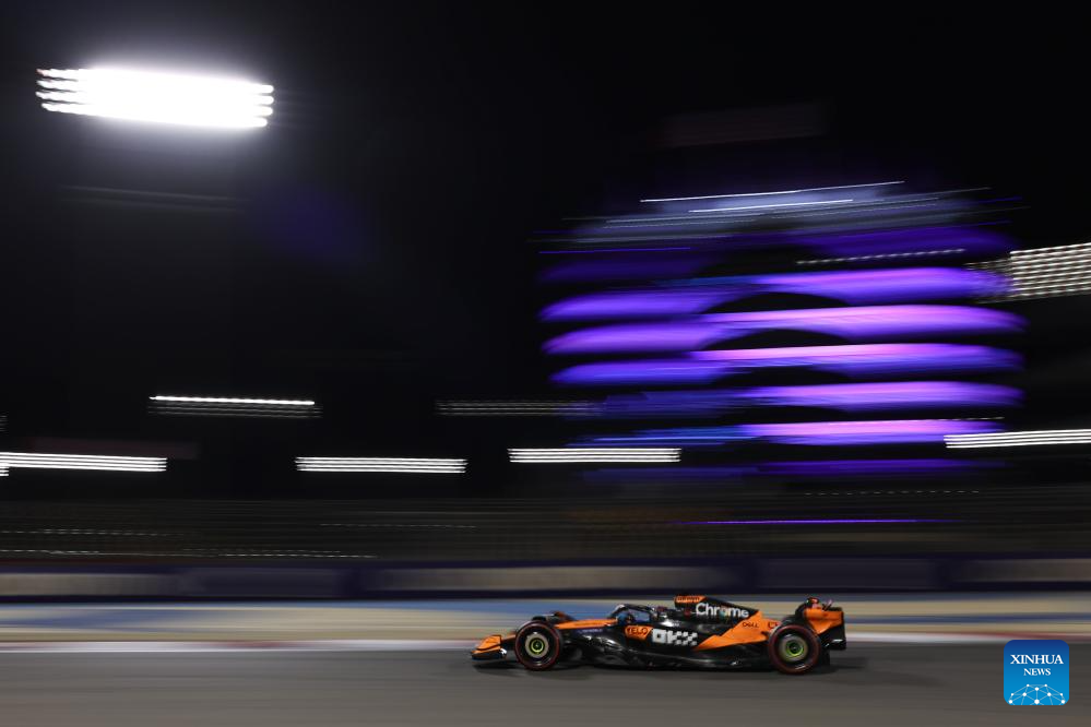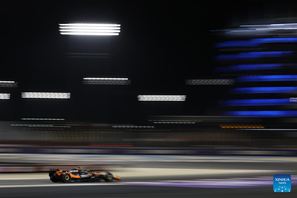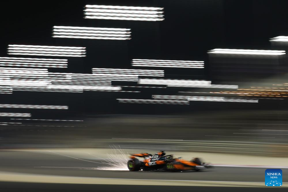 Mclaren's driver Lando Norris of Britain drives during the qualifying session of the Formula One Bahrain Grand Prix at the Bahrain International Circuit in Sakhir, Bahrain, on April 12, 2025. (Photo by Qian Jun/Xinhua)