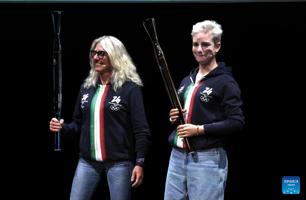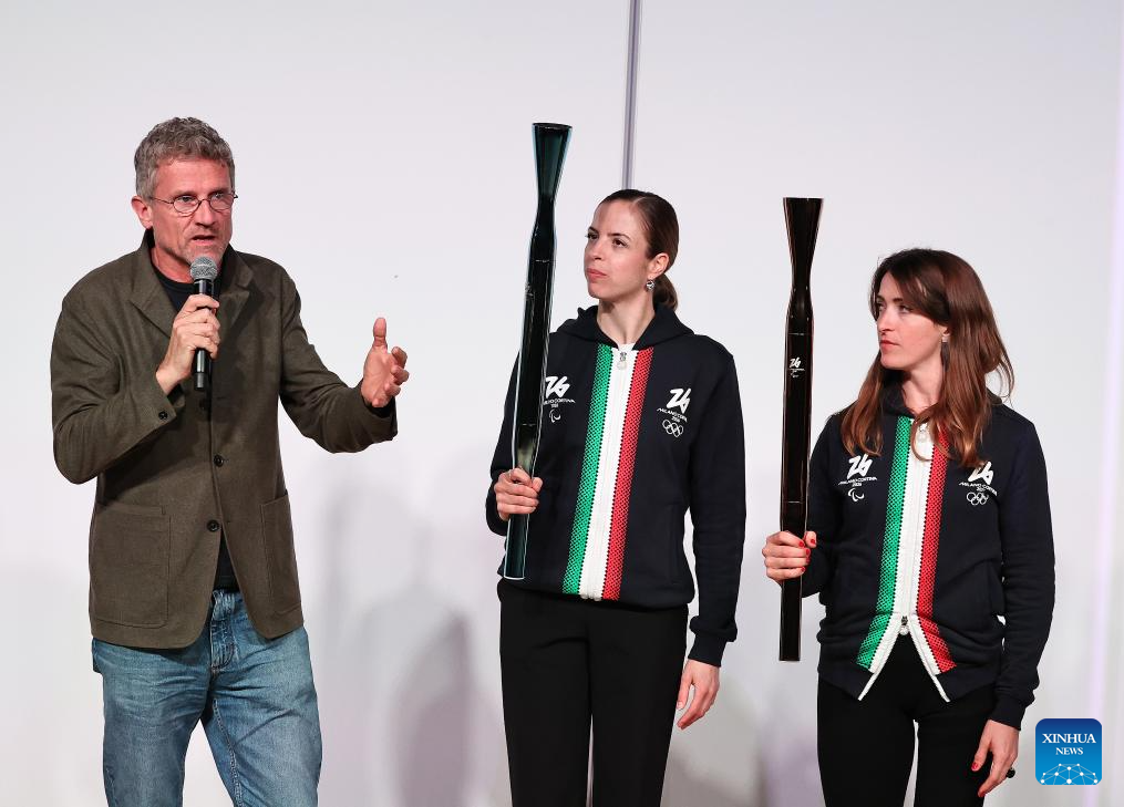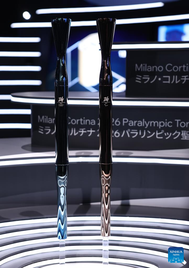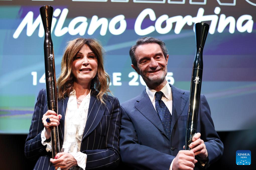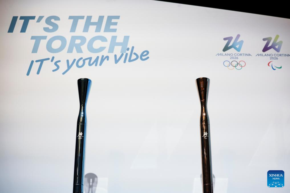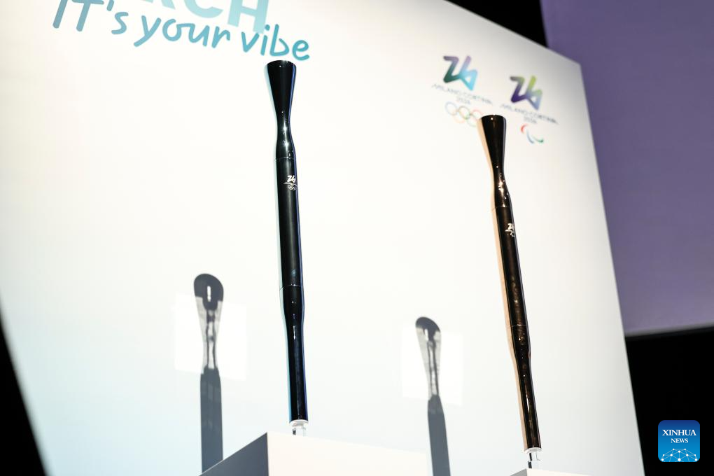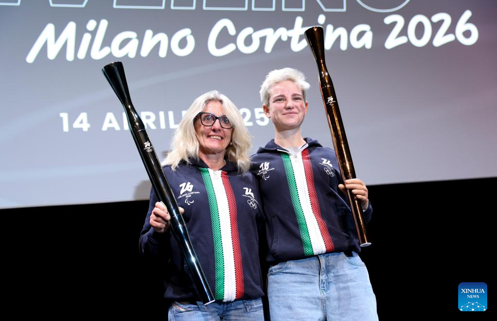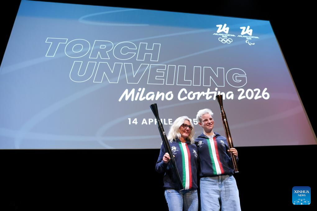 MILAN, Italy, April 14 (Xinhua) -- The organizers of the Milano Cortina 2026 Olympic and Paralympic Winter Games on Monday unveiled the official torches that will carry the flame of the Games, highlighting themes of Italian design, technological innovation and environmental sustainability.