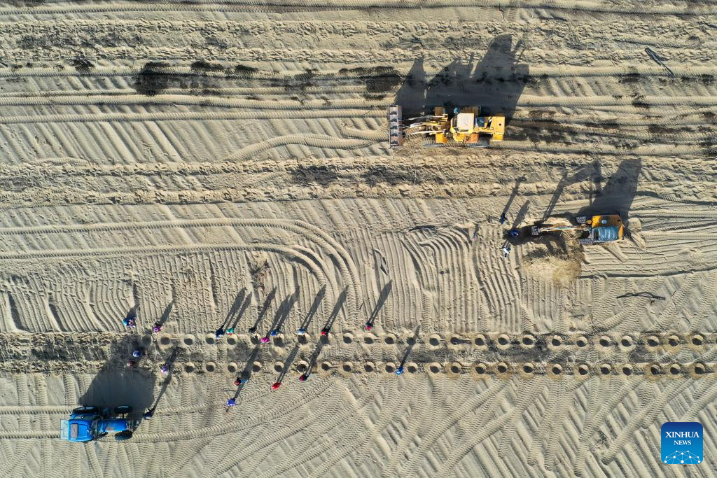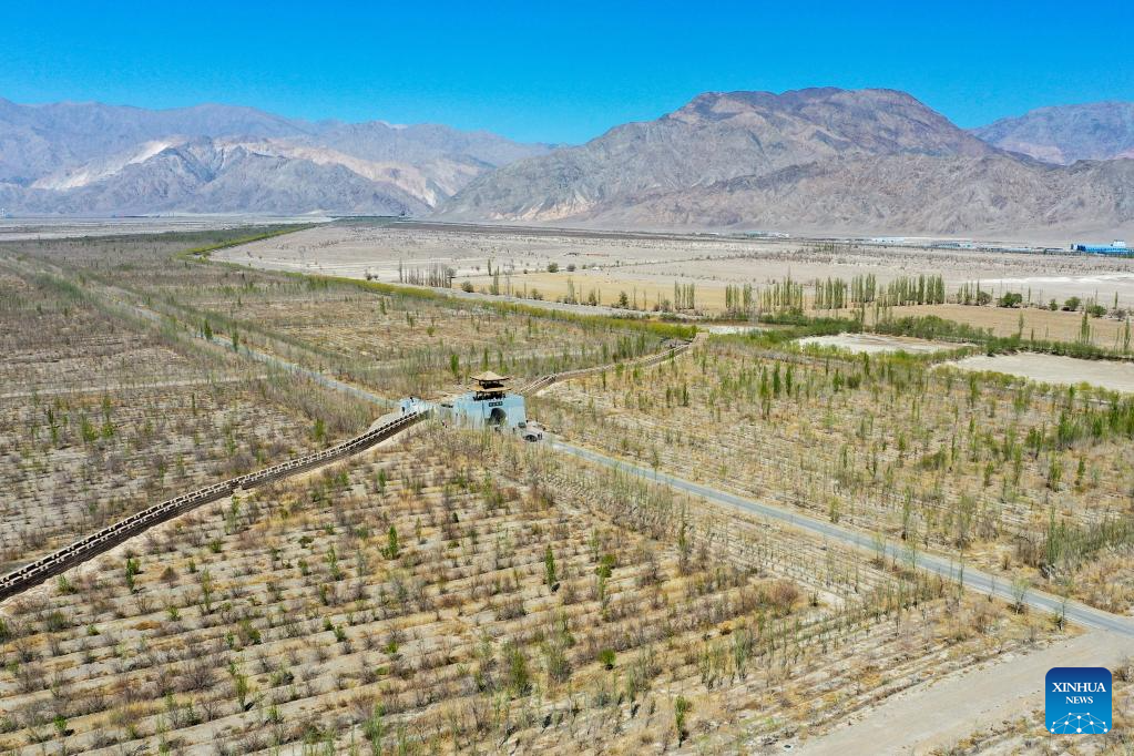 Meanwhile, Xinjiang will further widen the sand-blocking green belt and enhance desert-locking efforts to achieve sustainable sand control while improving local livelihoods. (Xinhua/Ding Lei)