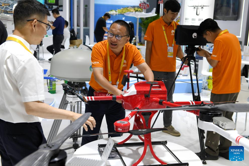 People visit the low-altitude economy zone at the 5th China International Consumer Products Expo (CICPE) in Haikou, south China's Hainan Province, April 15, 2025.