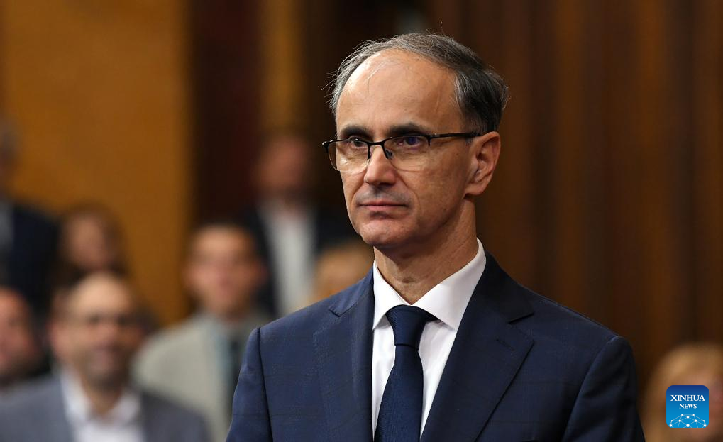 Djuro Macut takes the oath of office at the Serbian Parliament building in Belgrade, Serbia, on April 16, 2025. (Photo by Predrag Milosavljevic/Xinhua)