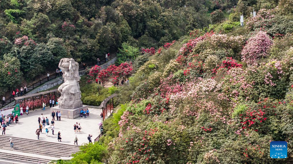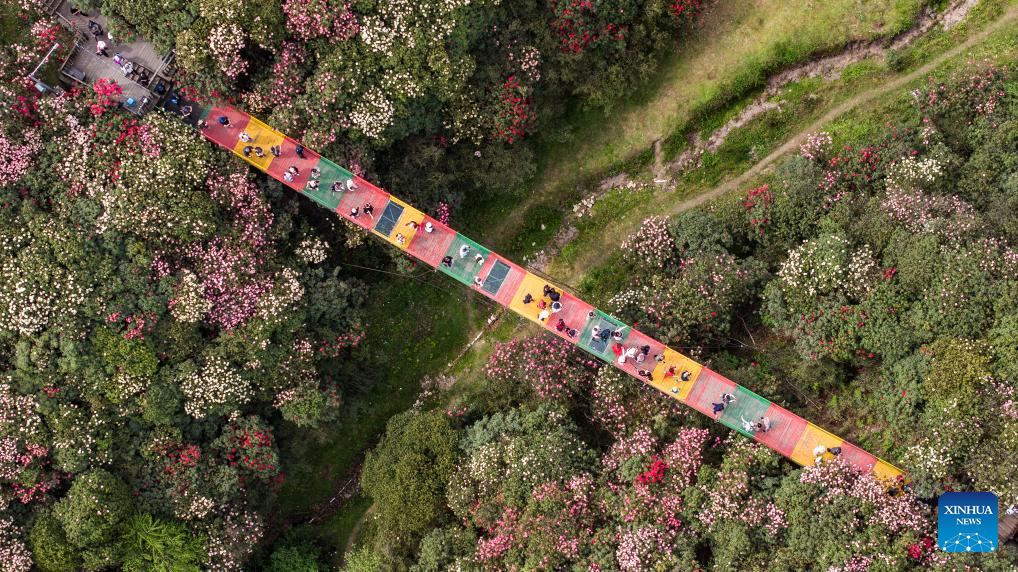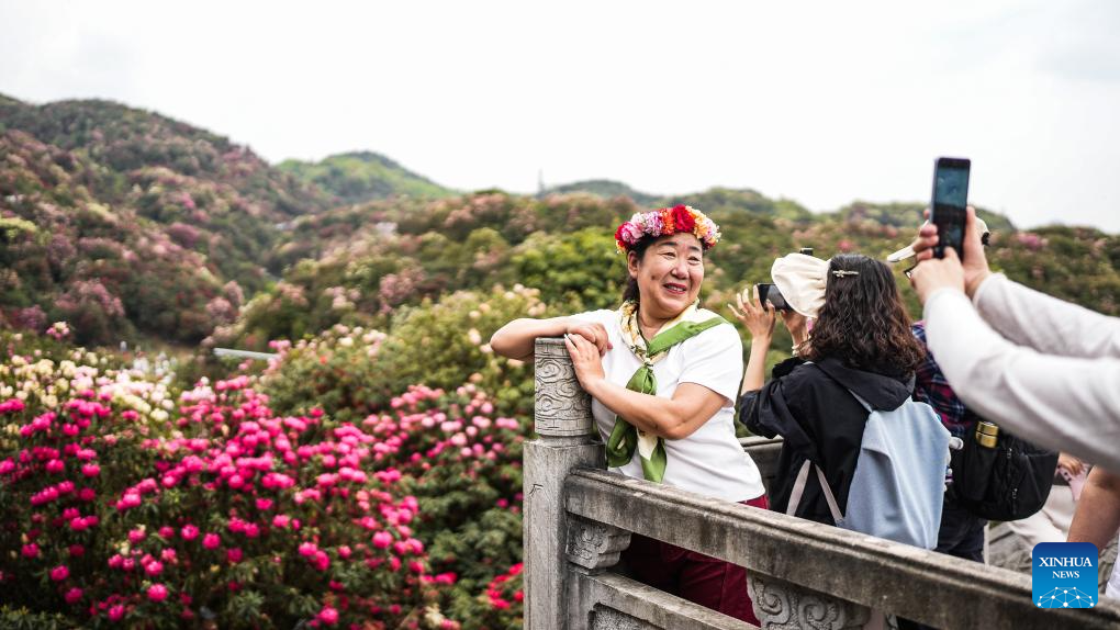 Tourists enjoy the view of blooming azaleas at Baili Azalea Nature Reserve in Bijie City, southwest China's Guizhou Province, April 17, 2025. The blooming azaleas in Bijie attract many tourists in spring. (Xinhua/Tao Liang)