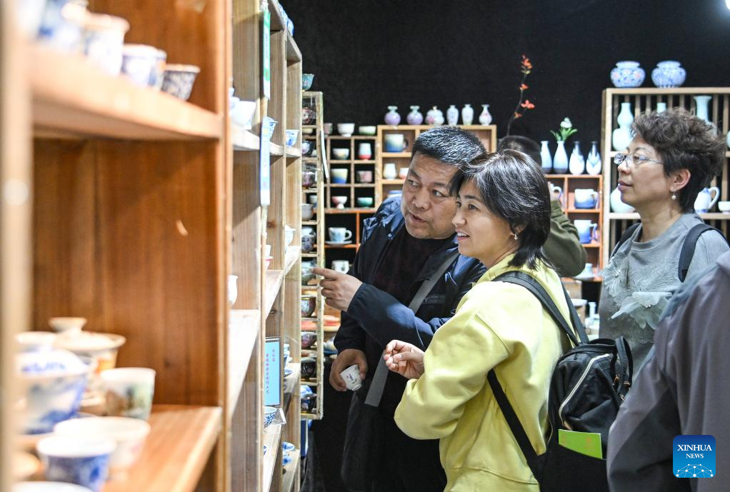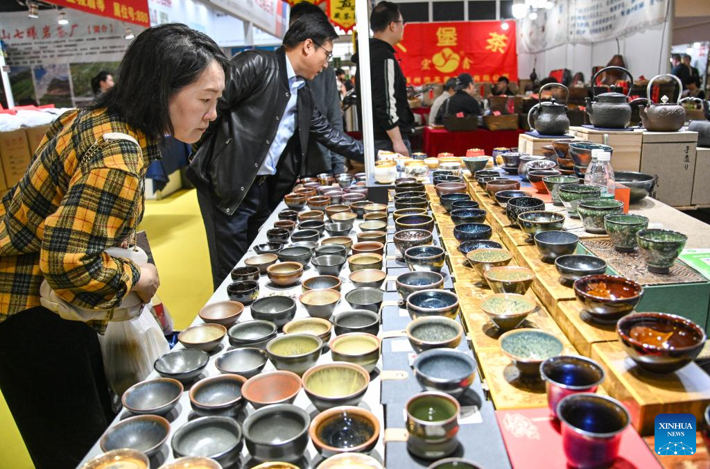 Visitors watch the teaware during the 18th Beijing International Tea and Tea Ceremony Exhibition at the China Agricultural Exhibition Center in Beijing, capital of China, April 18, 2025. The four-day Beijing International Tea and Tea Ceremony Exhibition kicked off in Beijing on Friday, attracting exhibitors from more than 700 tea-related enterprises. (Xinhua/Chen Yehua)