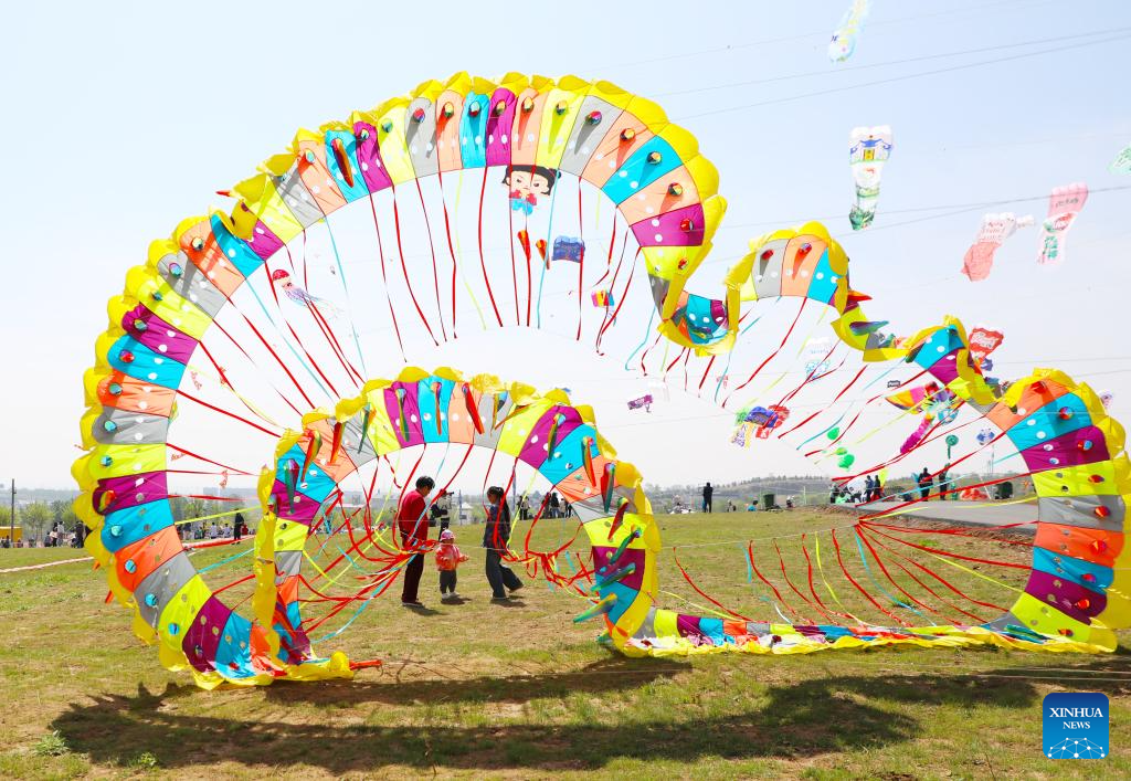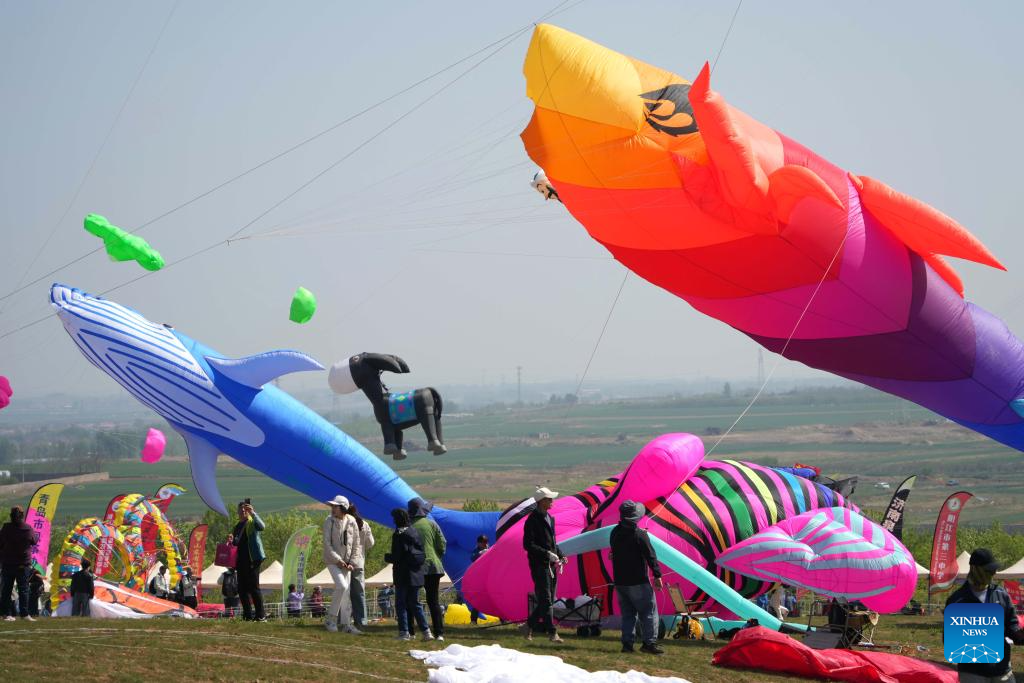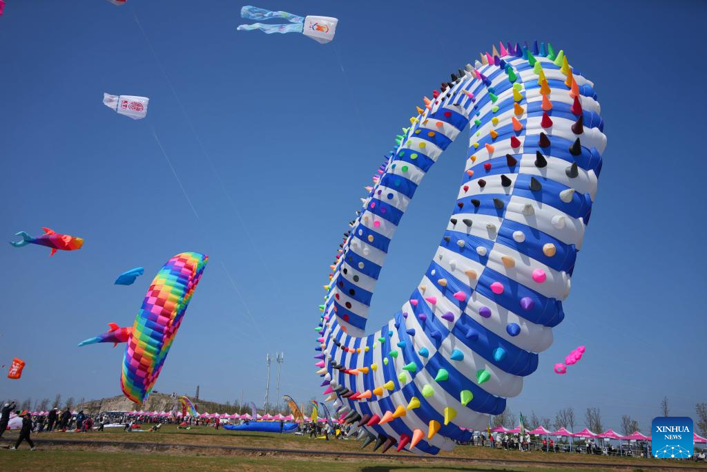 Kite fanciers fly kites at the 42nd Weifang International Kite Festival in Weifang, east China's Shandong Province, April 19, 2025. (Xinhua/Xu Suhui)