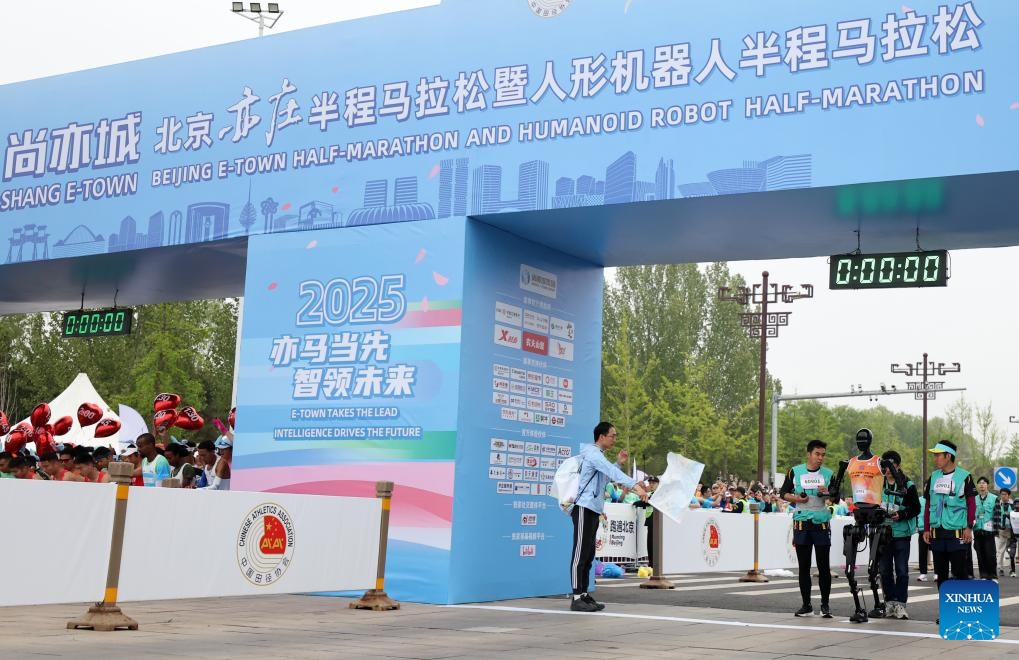 Robotic and human participants start during the Beijing E-Town half-marathon and humanoid robots half-marathon in the Beijing Economic-Technological Development Area in southeast Beijing, China, April 19, 2025. (Xinhua/Zhang Chenlin)