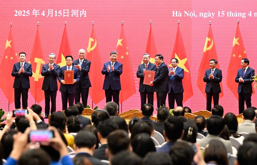 In Vietnam, Xi and General Secretary of the Communist Party of Vietnam Central Committee To Lam witnessed the launching ceremony of the China-Vietnam railway cooperation mechanism, which is expected to assist Vietnam in aligning its railway gauge with China's standardized gauge, thereby boosting economic connectivity and development.
