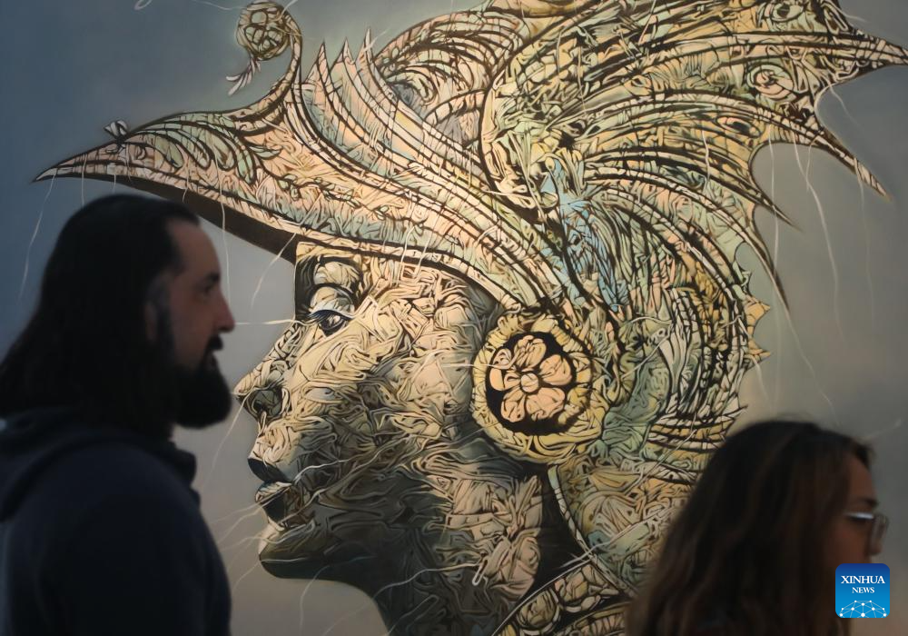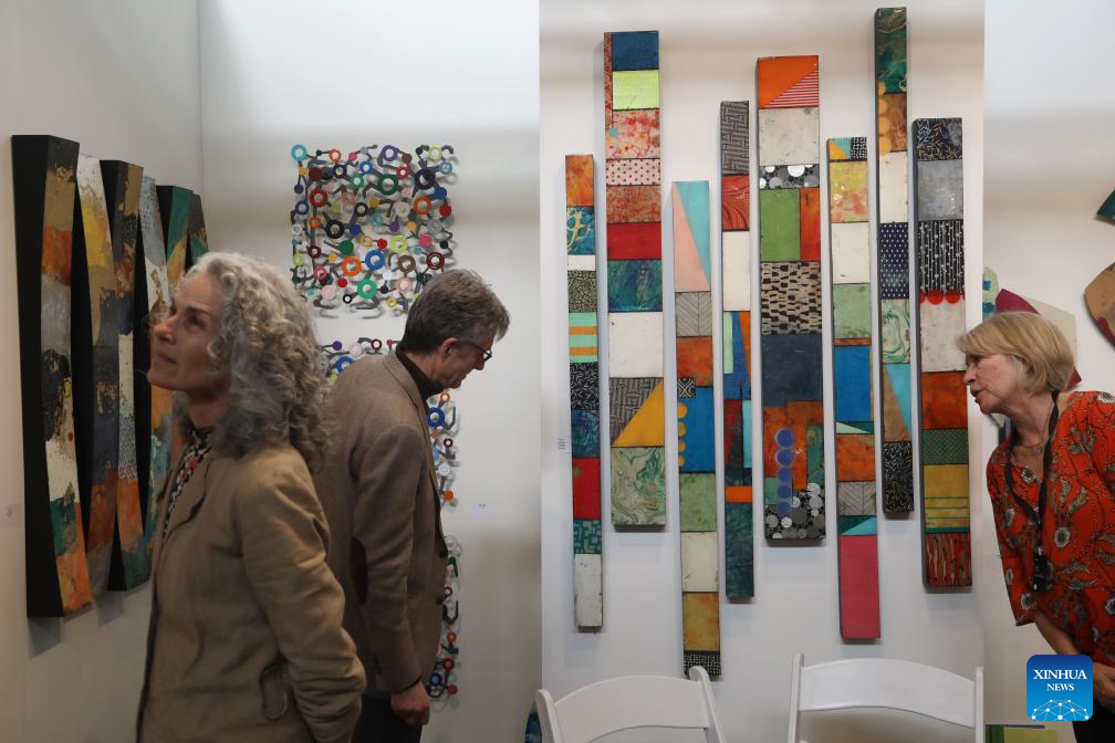 People visit the San Francisco Art Fair at Fort Mason Center in San Francisco, the United States, April 19, 2024. The art fair opens to the public from April 18 to April 20 this year. (Photo by Liu Yilin/Xinhua)