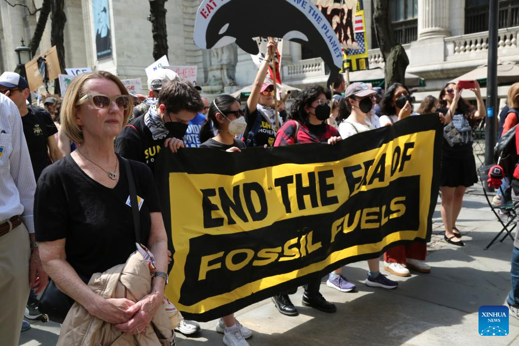 WASHINGTON, April 19 (Xinhua) -- Thousands of protesters on Saturday took to the streets in various cities across the United States in what demonstrators described as part of a "National Day of Action" against President Donald Trump's policies and perceived threats to democracy.