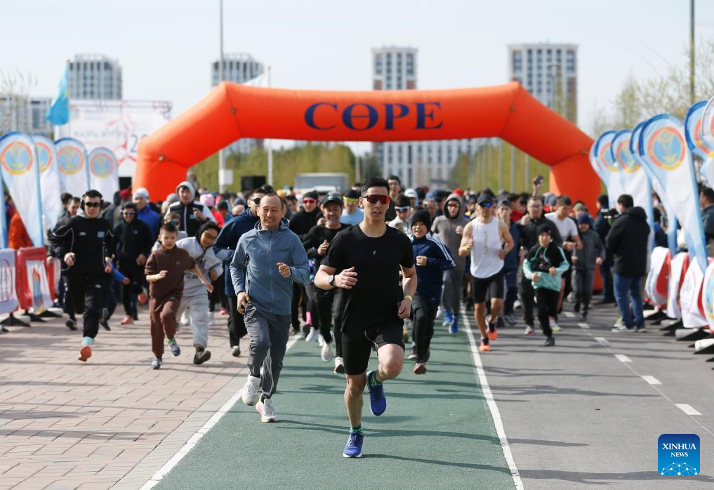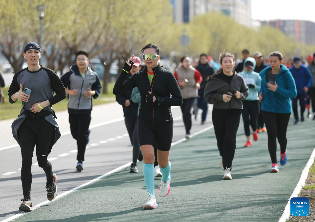 Participants run during the annual Run at the Astana Botanical Garden in Astana, Kazakhstan, April 20, 2025. (Photo by Kalizhan Ospanov/Xinhua)