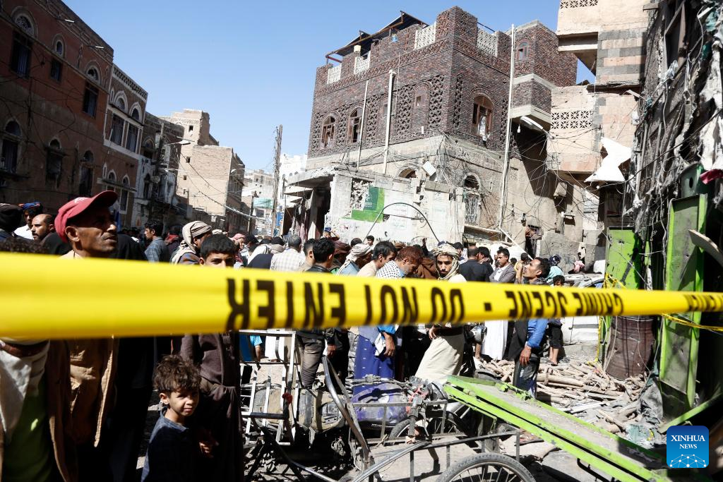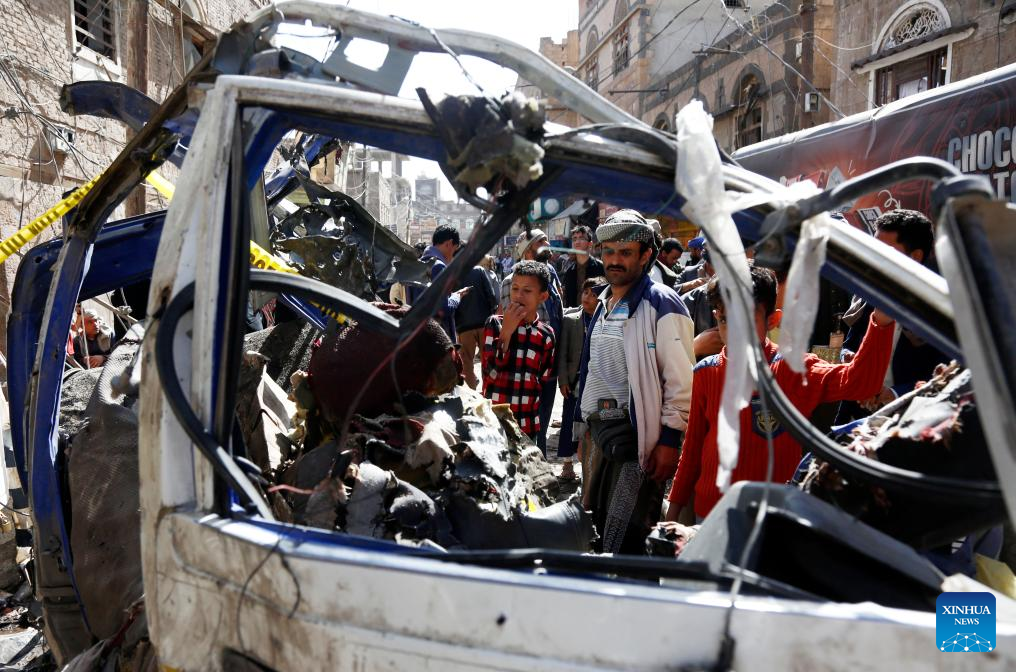 SANAA, April 20 (Xinhua) -- The death toll from fresh U.S. airstrikes on a crowded market in Yemen's capital Sanaa on Sunday evening has risen to 12, with at least 30 others wounded, Houthi-controlled health authorities said in a statement.