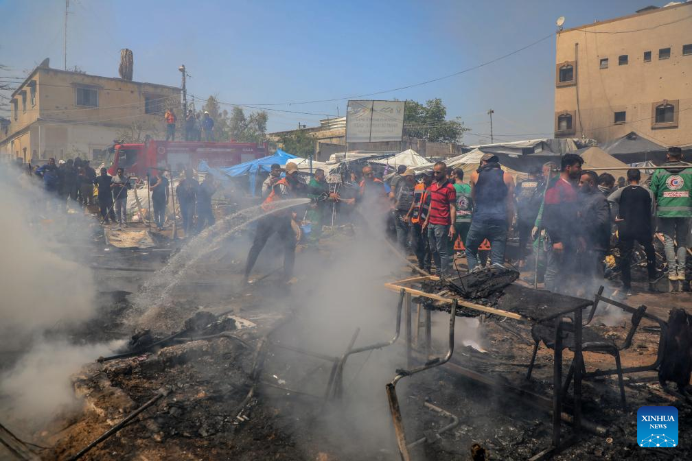 Firefighters put out a fire after an Israeli airstrike in Gaza City, on April 21, 2025. Israel's military said on Monday that it carried out more than 200 airstrikes across the Gaza Strip over the past three days, killing a member of the Islamic Jihad movement. (Photo by Rizek Abdeljawad/Xinhua)
